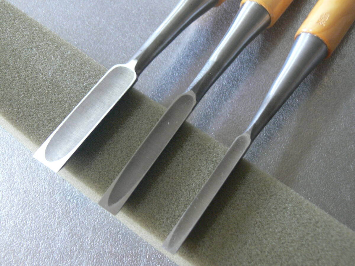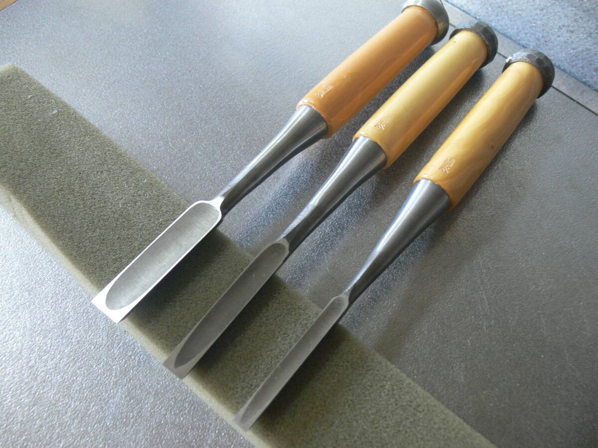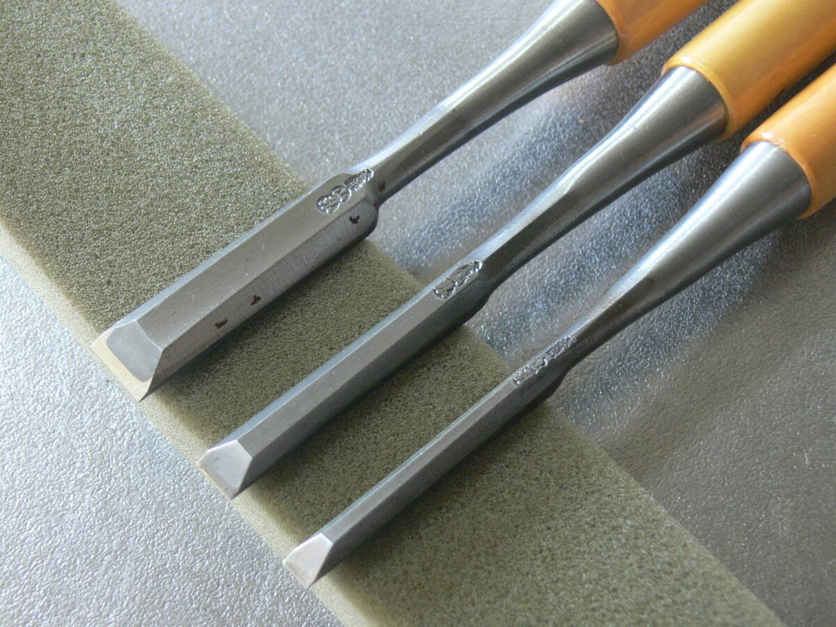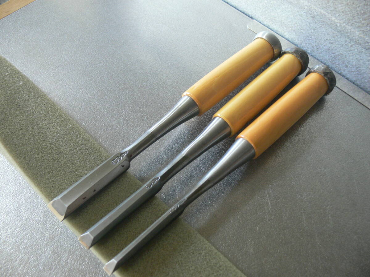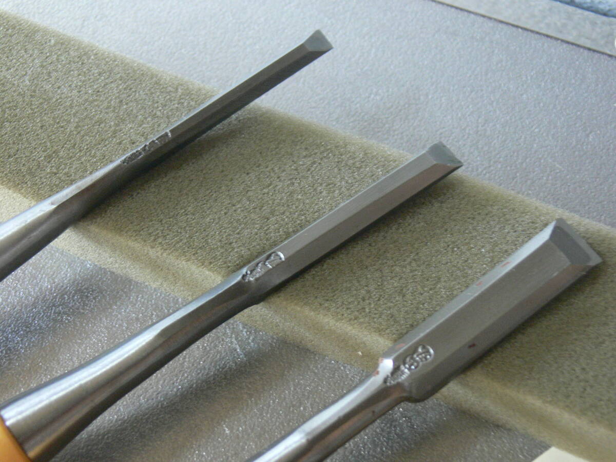 越後三条 岡山猛 山弘 作 磨仕上 面取追入 鑿 白紙一号 松炭焼入 3本(清忠 長弘 市弘 千代鶴 清久 舟弘 海弘 常弘 國慶 越彦 田斎 啓寿)2