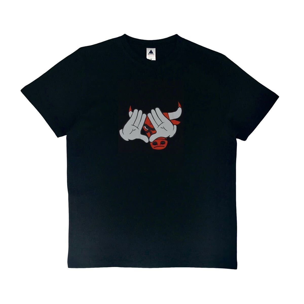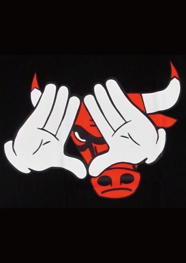 かつてマイケル・ジョーダンやデニス・ロッドマンが在籍したNBAの名門チーム シカゴ・ブルズのロゴとハンドジェスチャーを組み合わせたおもしろパロディデザイン。