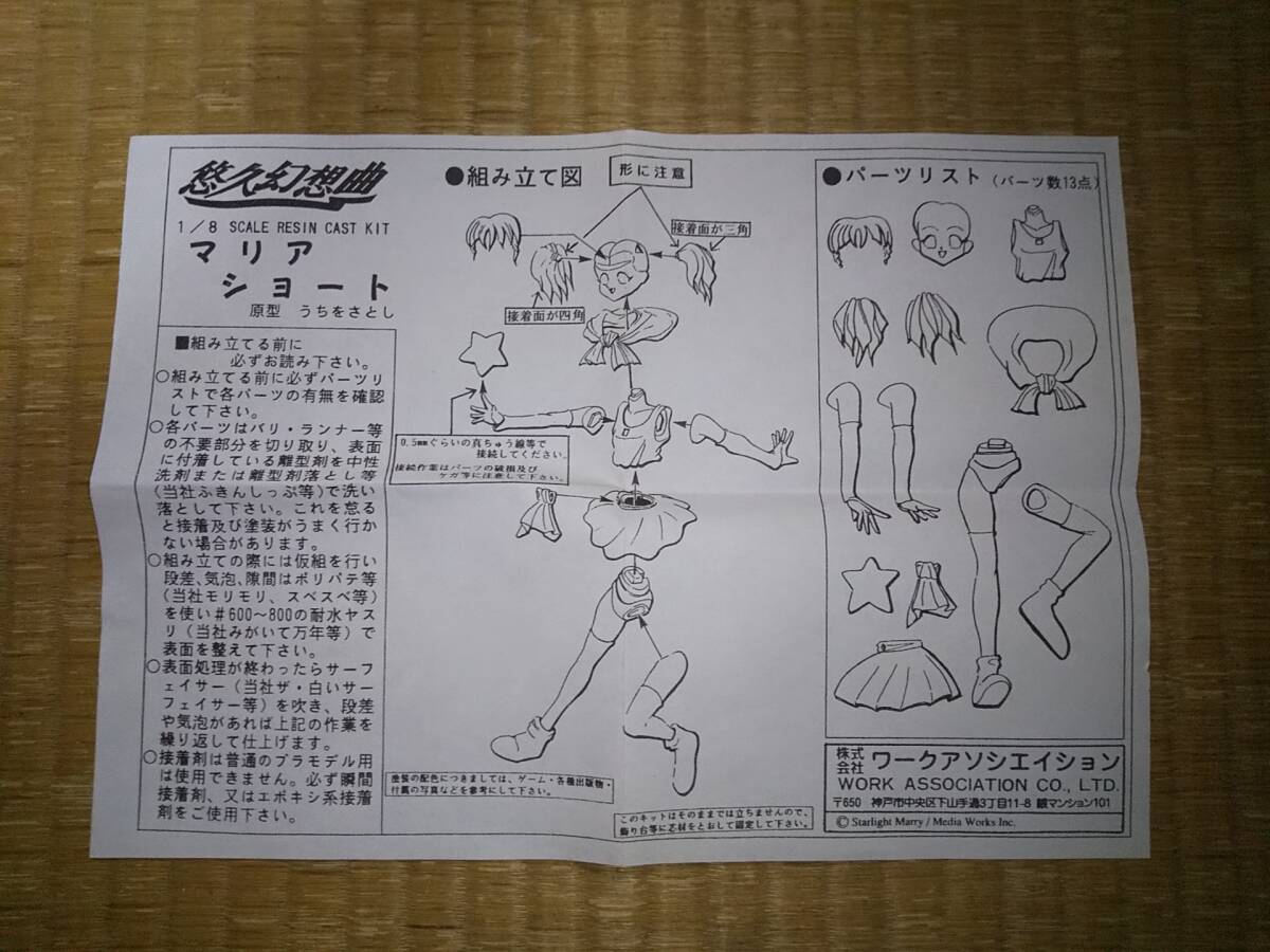 ワークアソシエイションの1/8 レジンキャストガレージキット 悠久幻想曲 より マリア・ショート です。原型製作 うちをさとし