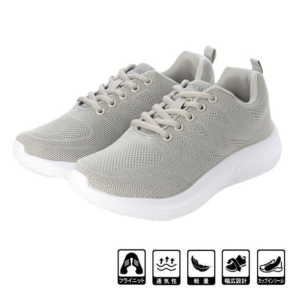 23552 フライニット スニーカー グレー 23.5cm レジャーシューズ スポーツシューズ 通気性 軽量 レディース メンズ 男女兼用