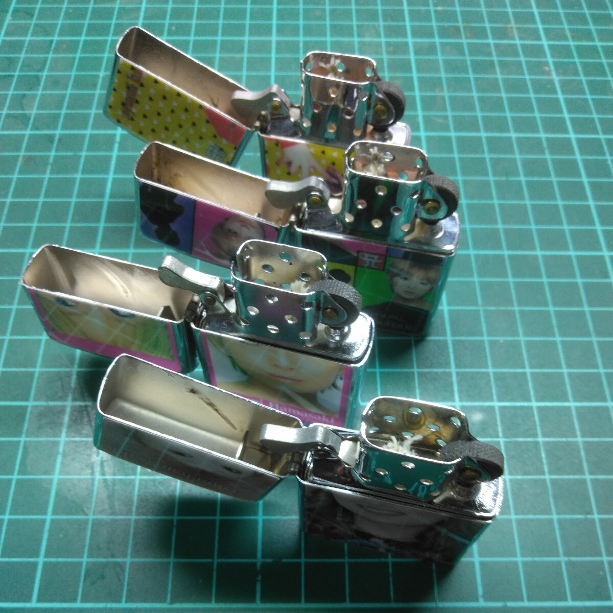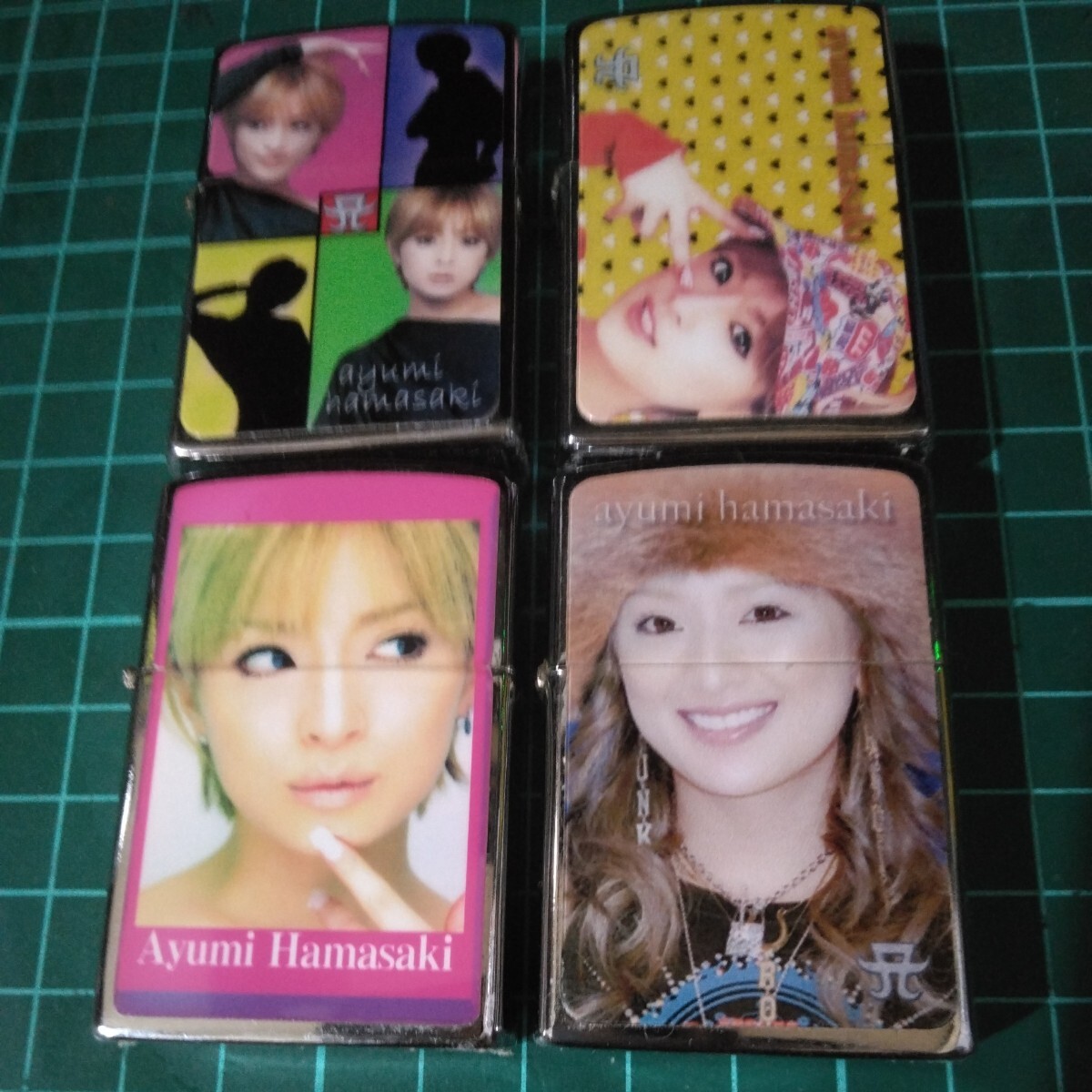 浜崎あゆみのオイルライターです(未使用品)非売品 入手困難 4個セットです、20年位前の商品です、自宅保管品になります、返品不可で願います。(ライターとしては郵送出来ない為鉄板加工品としての名目での発送となります)重さがあるため少々料金高めになります。