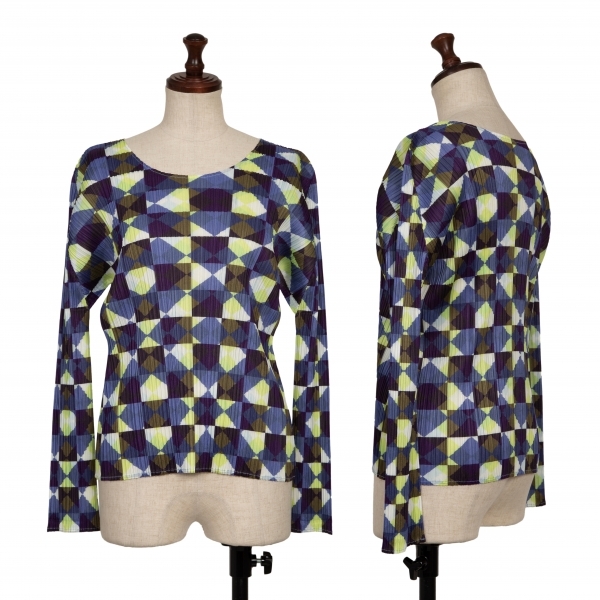 プリーツプリーズPLEATS PLEASE ジオメトリックプリントカットソー 紫黄緑白3 |