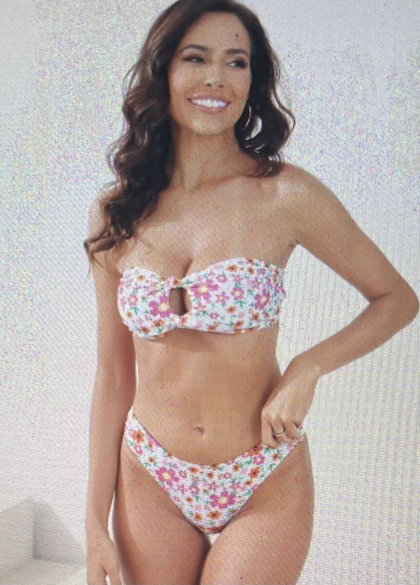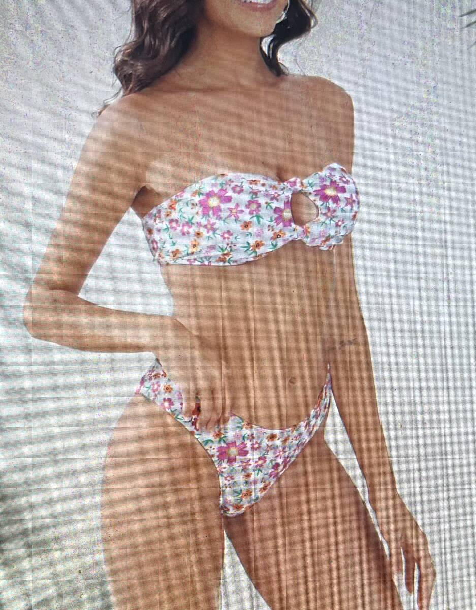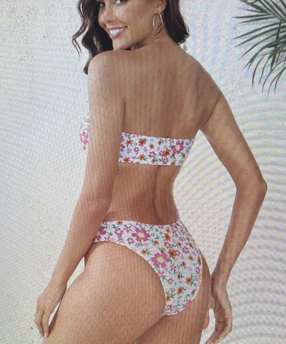 女性のツーピースフローラルプリントバンドゥビキニ水着、ハイカットボトム、夏のビーチウェア、速乾水着