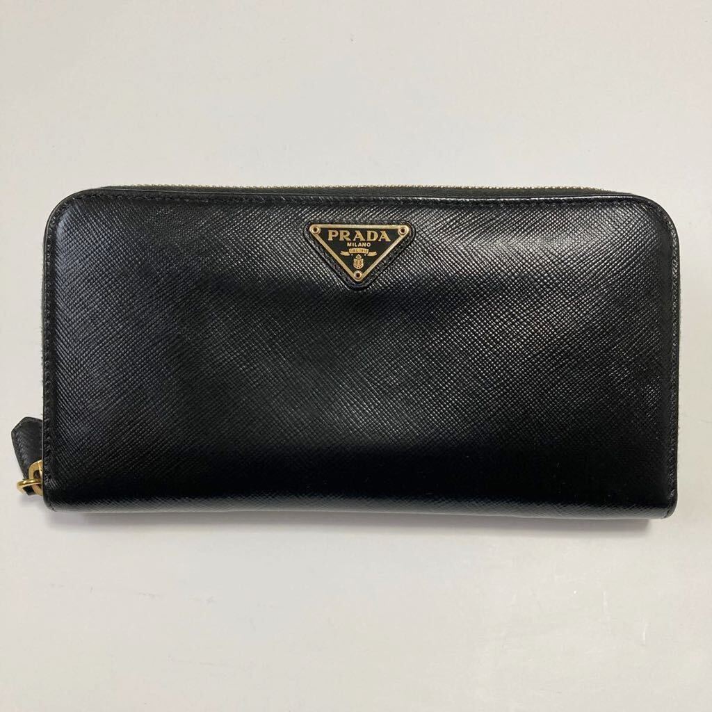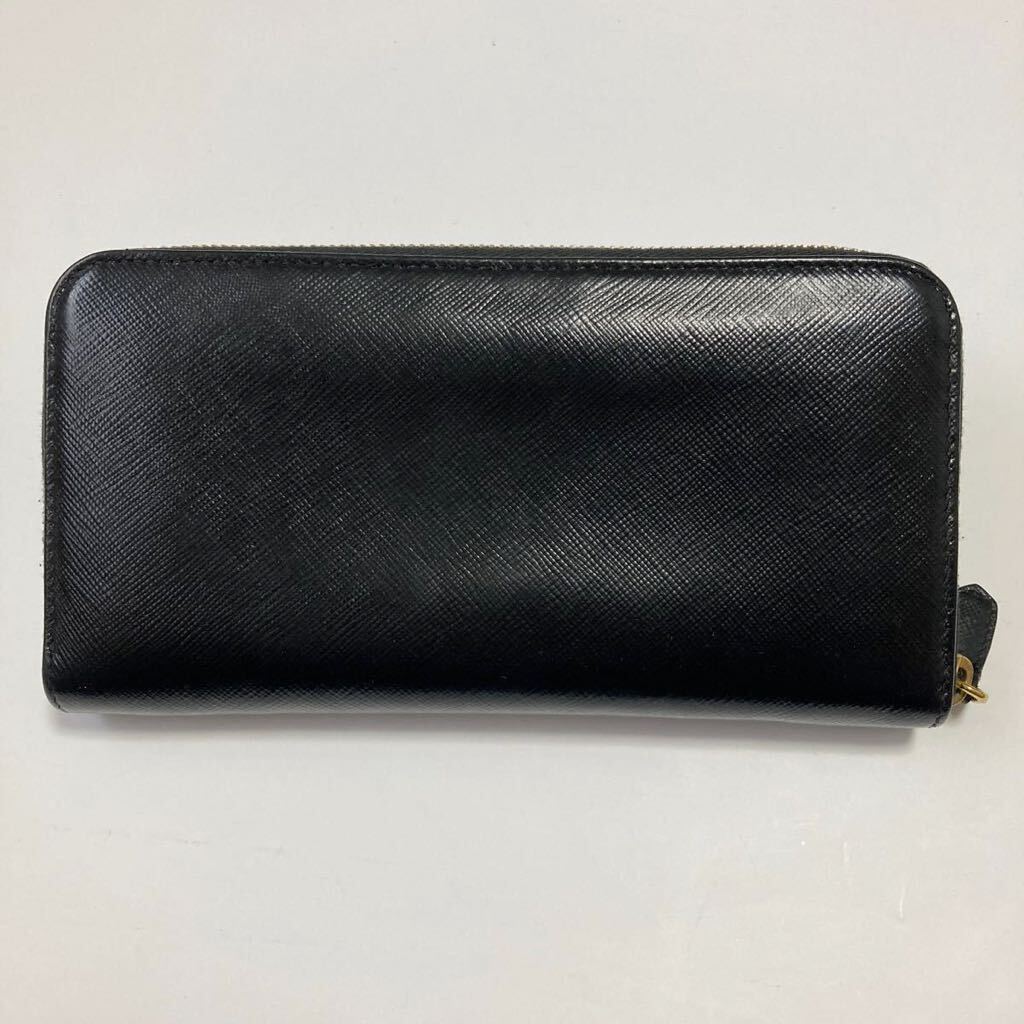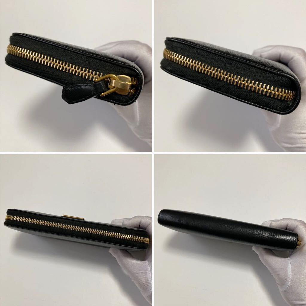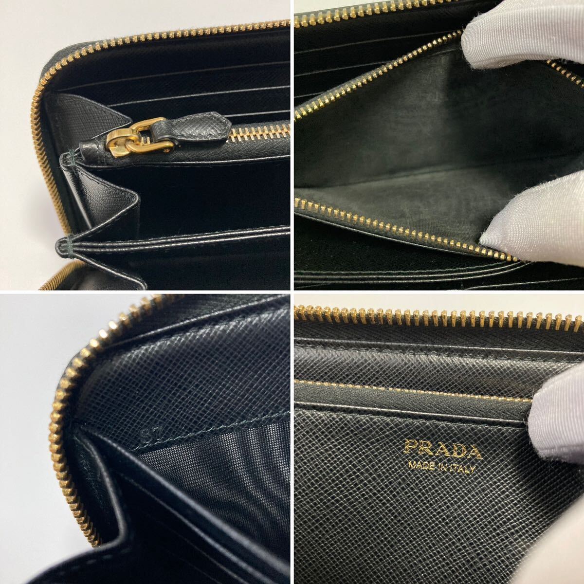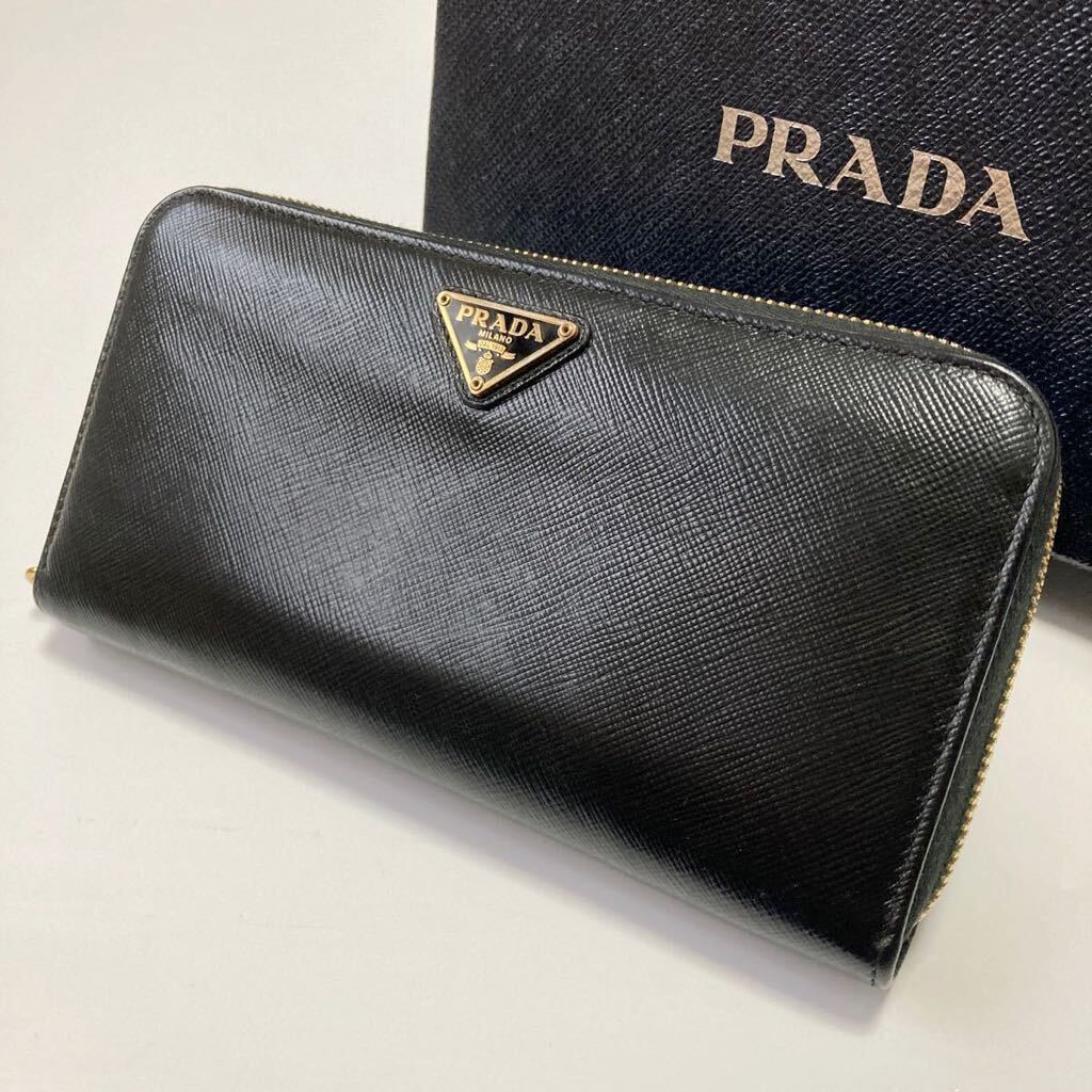 ★PRADA プラダ ラウンドファスナー ジップ 長財布 三角ロゴ ゴールド金具 サフィアーノ ブラック 黒【鑑定済み 本物保証】