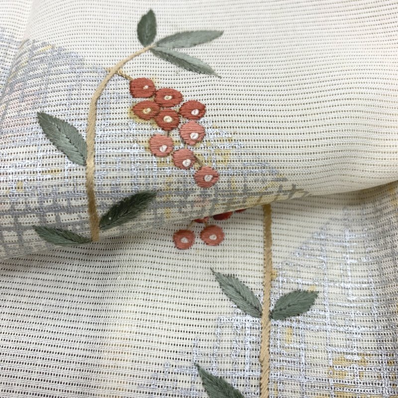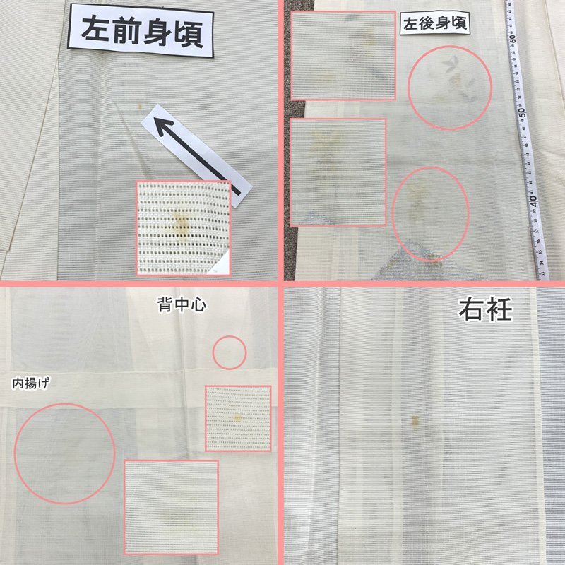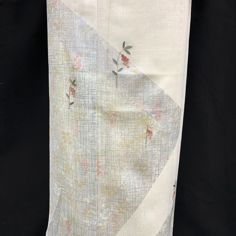 〇夏物 絽 付下げ 刺繍 南天 アイボリー〇 (No.ed) アイボリーの絽の地に、南天のような赤い実の植物が刺繍で施された可愛らしい付下げです。(画像の帯406my57や小物は参考商品で、本品には含まれません)。 画像のようにところどころシミがございます。衿山に若干使用汚れがございますが、着用の際は折る部分なので隠れます。 【素材】正絹 【色】アイボリー *モニターによって色味は実際と異なる場合がございます。 【サイズ】裄:66cm、丈(肩から):158cm、袖幅:33cm、袖丈:47cm、前幅:23.5cm、後幅:29.5cm、縫込み 身頃側:0.5cm、お袖側:2cm、内揚げ幅:4.5cm *素人採寸のため、多少の誤差はご容赦ください。 上質な逸品ですので、いかがでしょうか?よいお品物でお勧めです^^ |