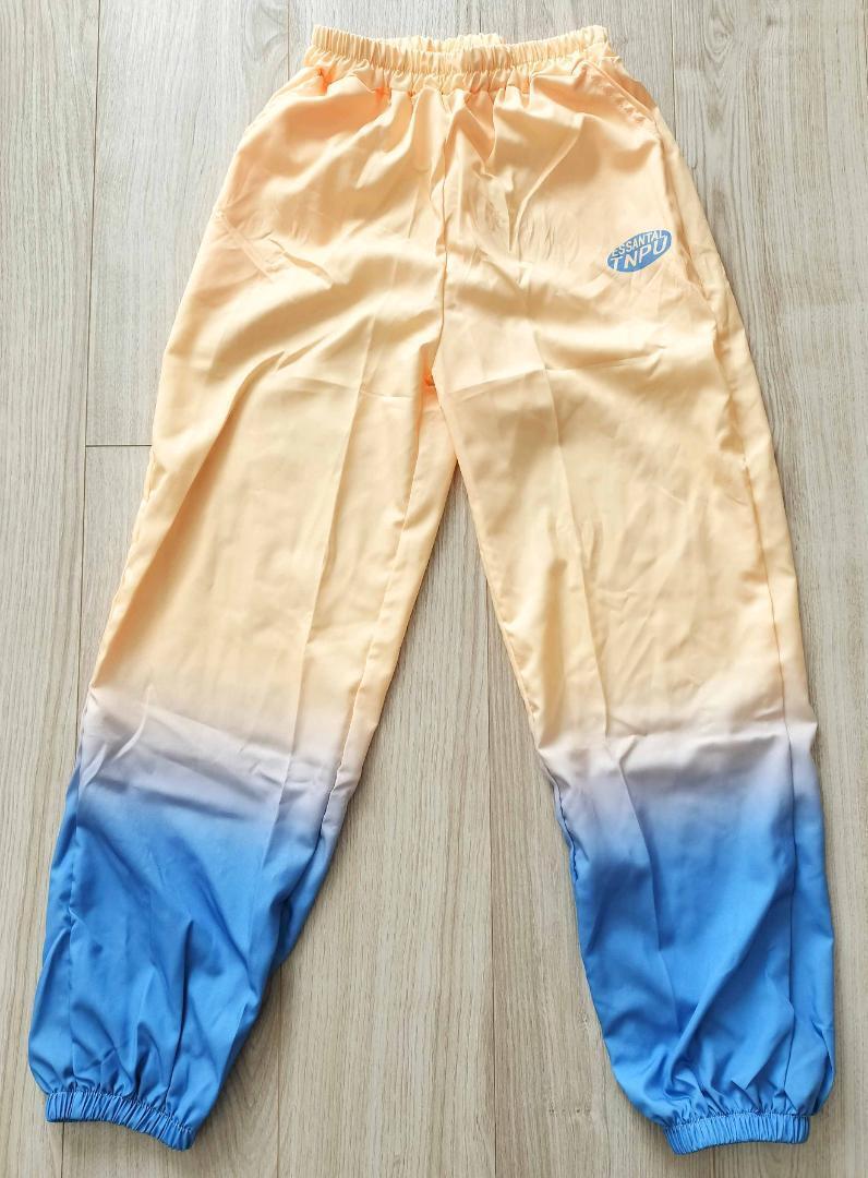 モデルの写真よりTシャツのロゴプリントがネイビーに近いお色味で、パンツの色もモデルの写真より色味が濃いです。