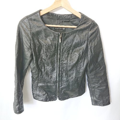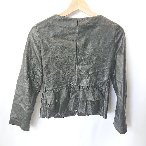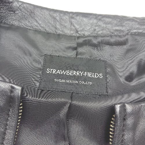 ◇ STRAWBERRY-FIELDS ストロベリーフィールズ 羊革 シープスキン 長袖 レザー ジャケット サイズ2 ブラック レディース E
