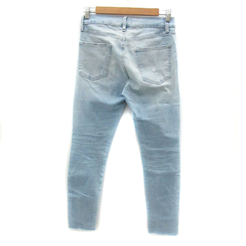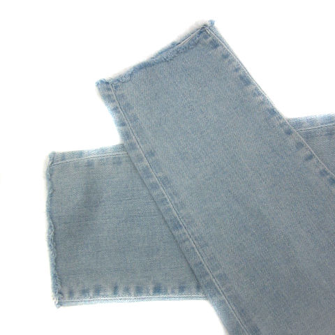 アズールバイマウジー デニムパンツ ジーンズ テーパードパンツ ロング丈 ダメージ加工 カットオフ M ライトブルー /YS10 レディース