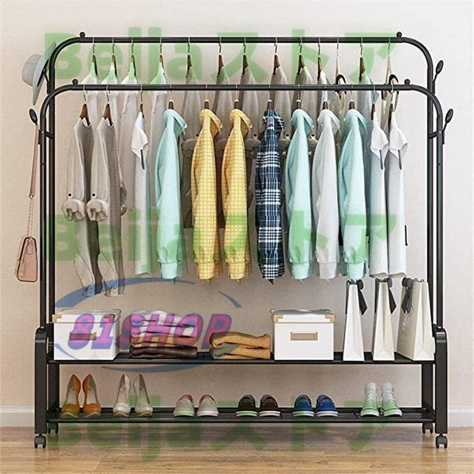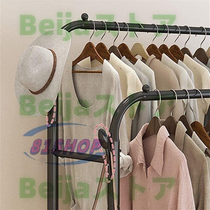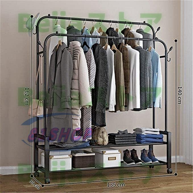 全長135CM ハンガーラック 2段 可動棚 高耐荷重 コートハンガー 収納棚 スチール棚 洋服掛け おしゃれ ホワイト