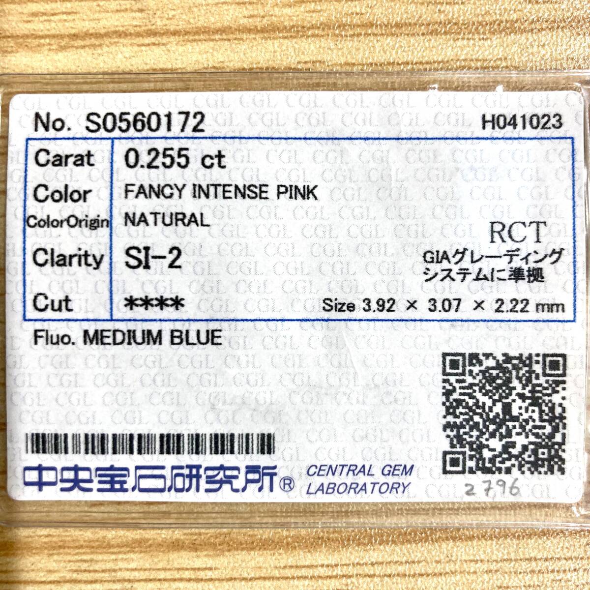 FANCY INTENSE PINK 0.255ct/RCT/RT2796/CGL/GIA