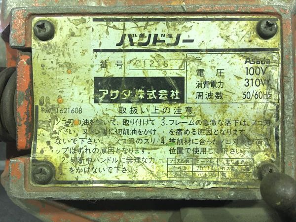 ◆引取推奨(大阪)◆Asada アサダ バンドソー ジャンク品 ④ 電動工具 (通電確認済/100V/50Hz60Hz/約寸W910xH430xD310mm/約44kg) 現状品 |