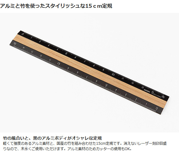 アルミと竹を使ったスタイリッシュな15cm定規。