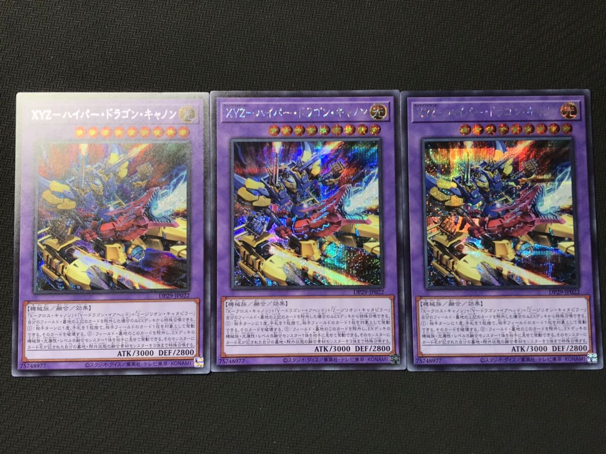 出品物『XYZ-ハイパー・ドラゴン・キャノン(DP29-JP022)シークレットレア3枚セット』です。