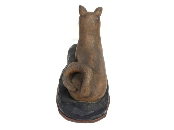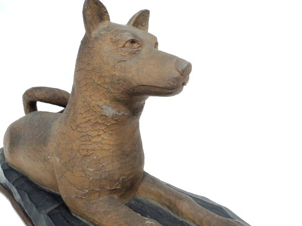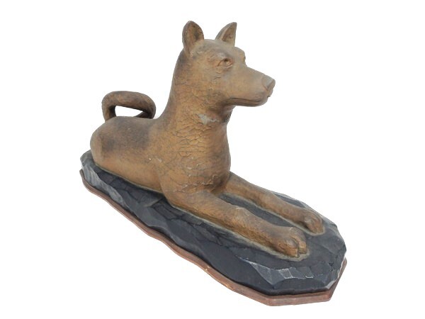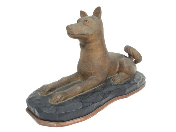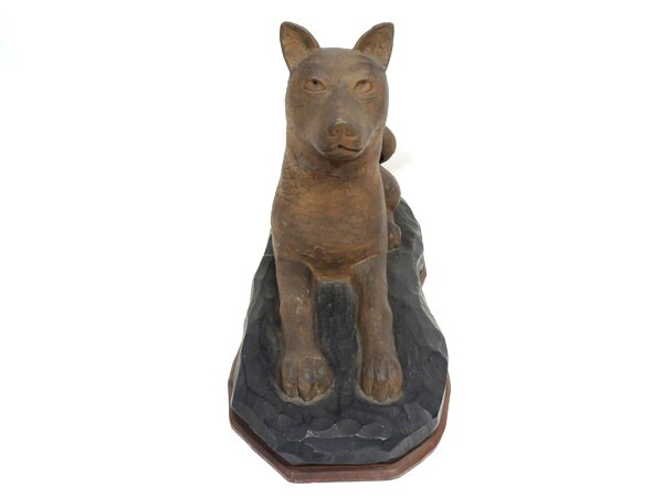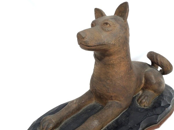 無銘/「忠犬/柴犬/日本犬」/木彫/幅:50cm/木造/彫刻/置物/オブジェ/作家物/骨董/古美術/美術品