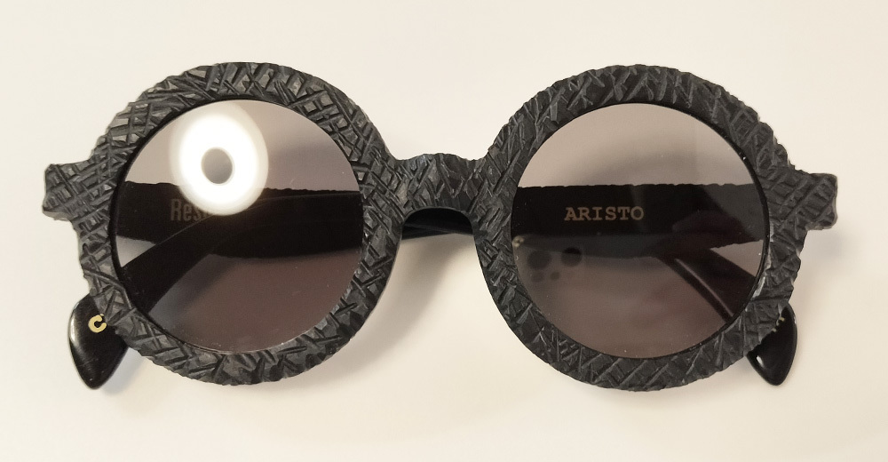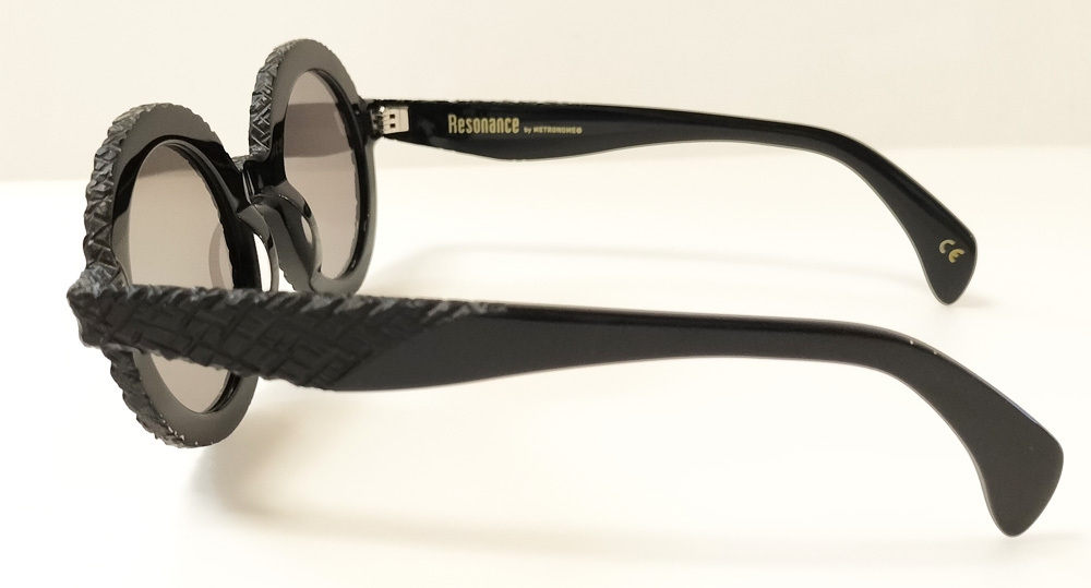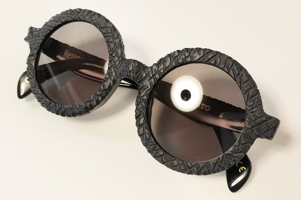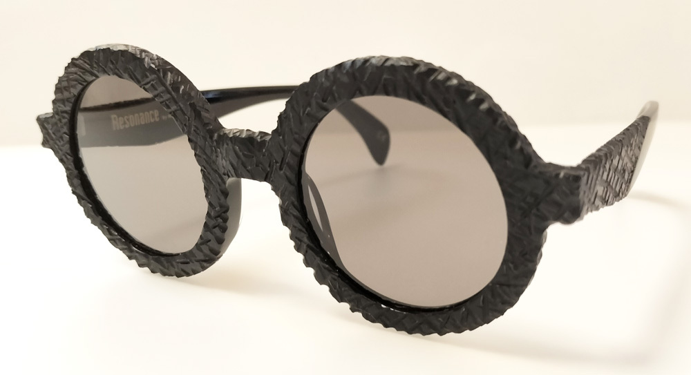アセテートのフレームに、ブランド独自の技法「化石加工」が施されています。 |