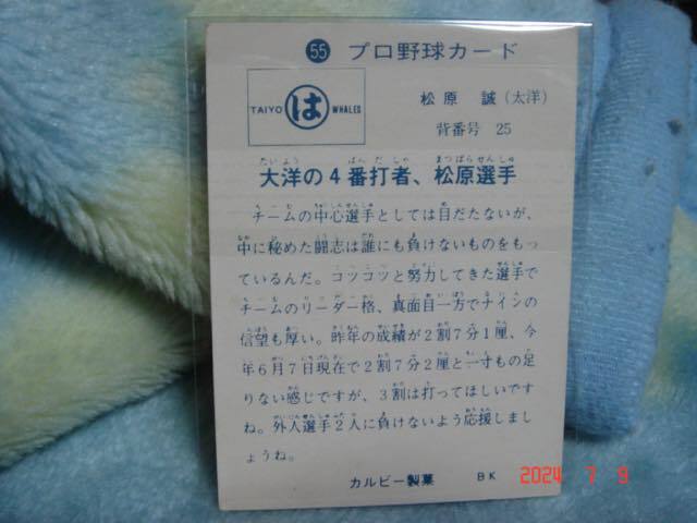 激レア カルビー73年プロ野球・バリエーション・カード NO.55(松原/大洋) 旗版