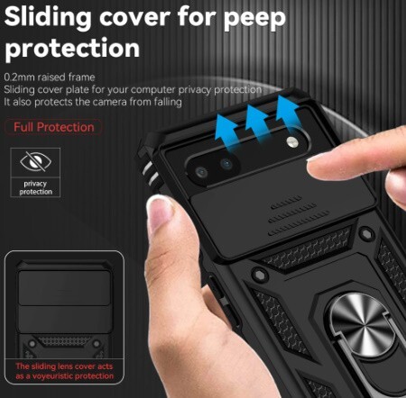 8色選択 Google Pixel 8a ミリタリー スライドプッシュ窓 耐衝撃 ケース カバー メタルリング カメラレンズ保護 グーグル ピクセル