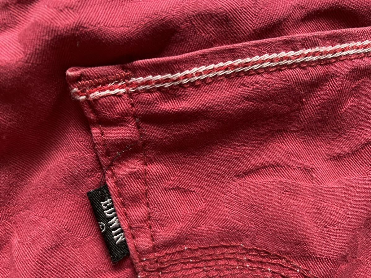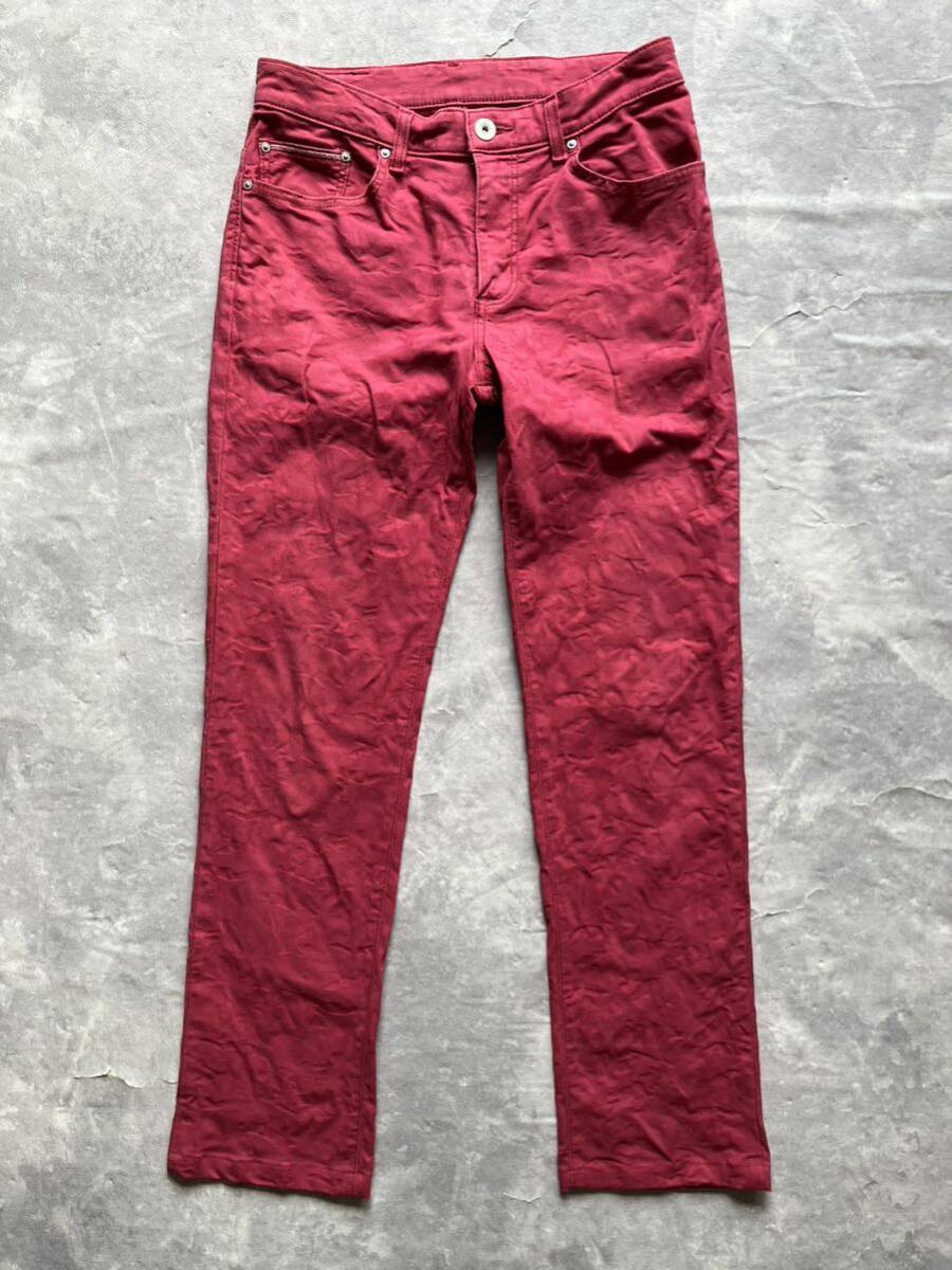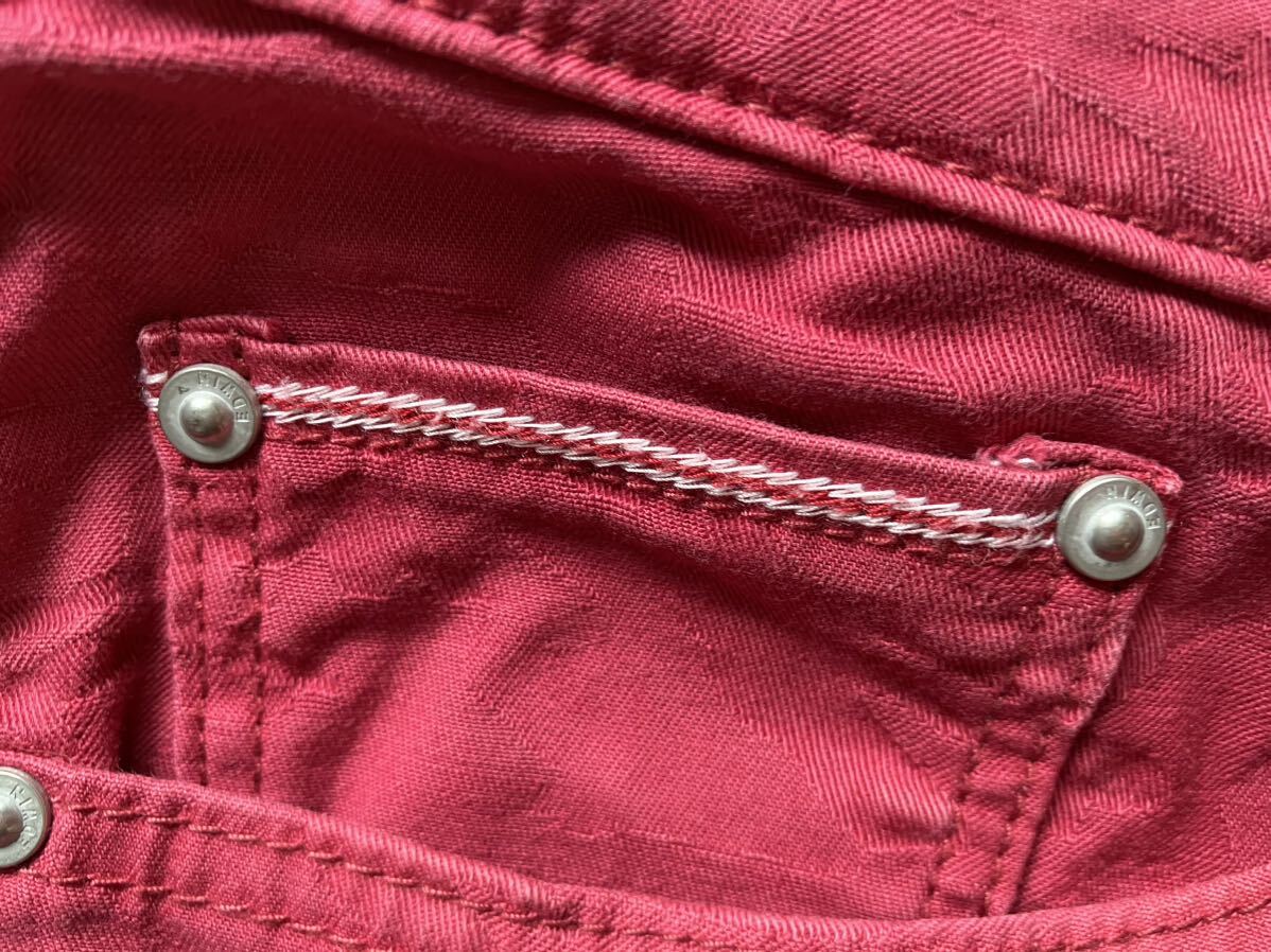 ○柔らかくて動きやすい、ジャガード織で柄を表現した新感覚カラージーンズです。