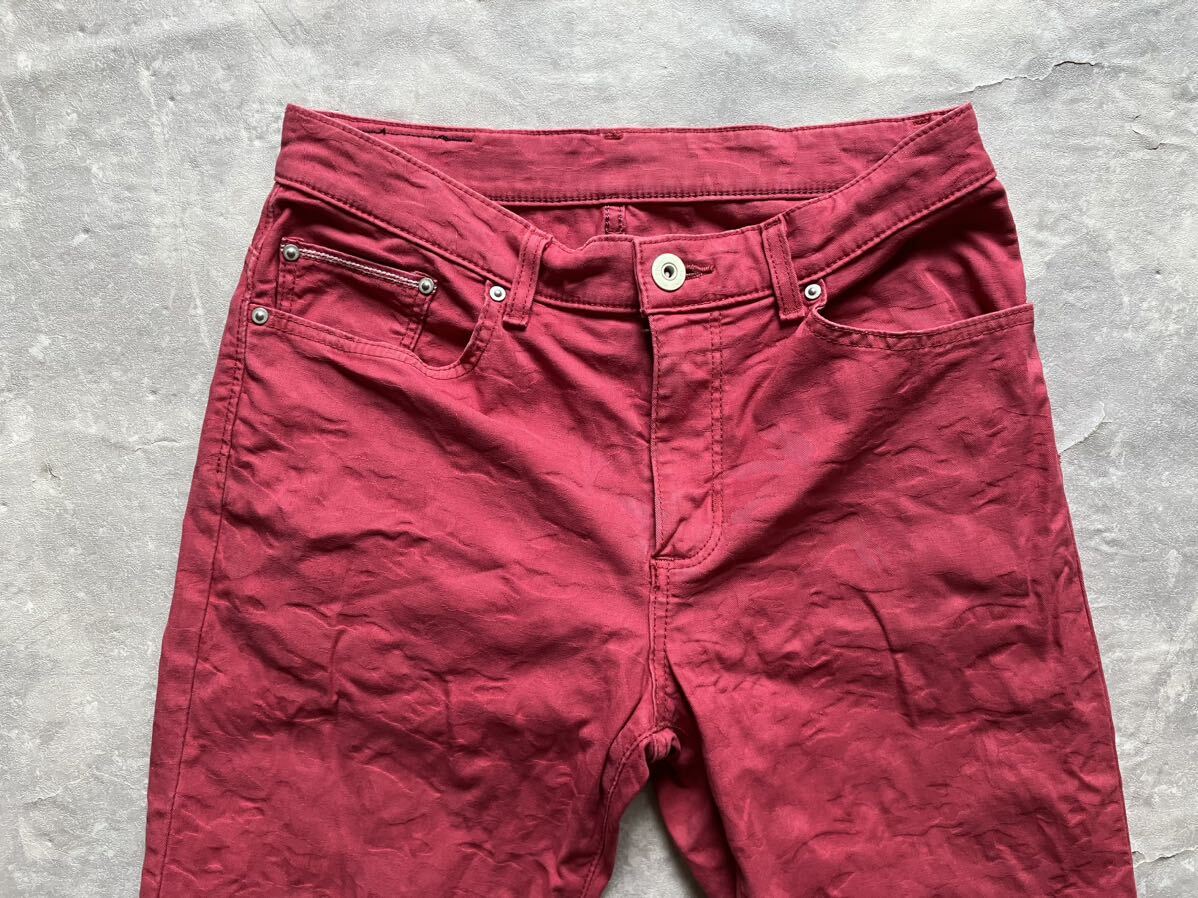 ○フォルムはヒップ、ワタリ、モモは細めにすっきりとシャープなタイトフィット。ヒザ下からストレートになるテーパードすっきりラインで脚長に魅せる効果抜群です。