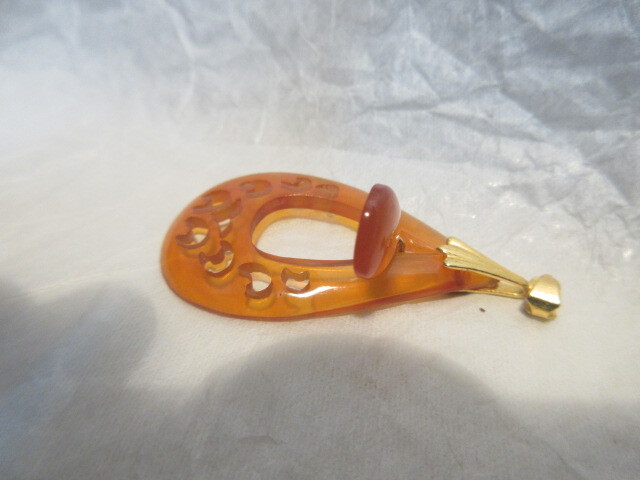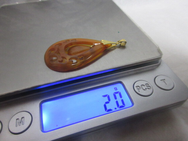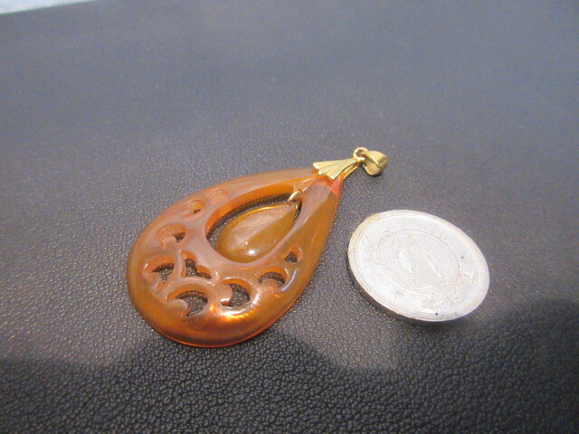 POWERSTONE 琥珀PendantHead 透かし彫細工揺方異る二重Head2g 健康・長寿・富守・仕事運効果発揮 精神的強さ 大地贈物 力強い守護神