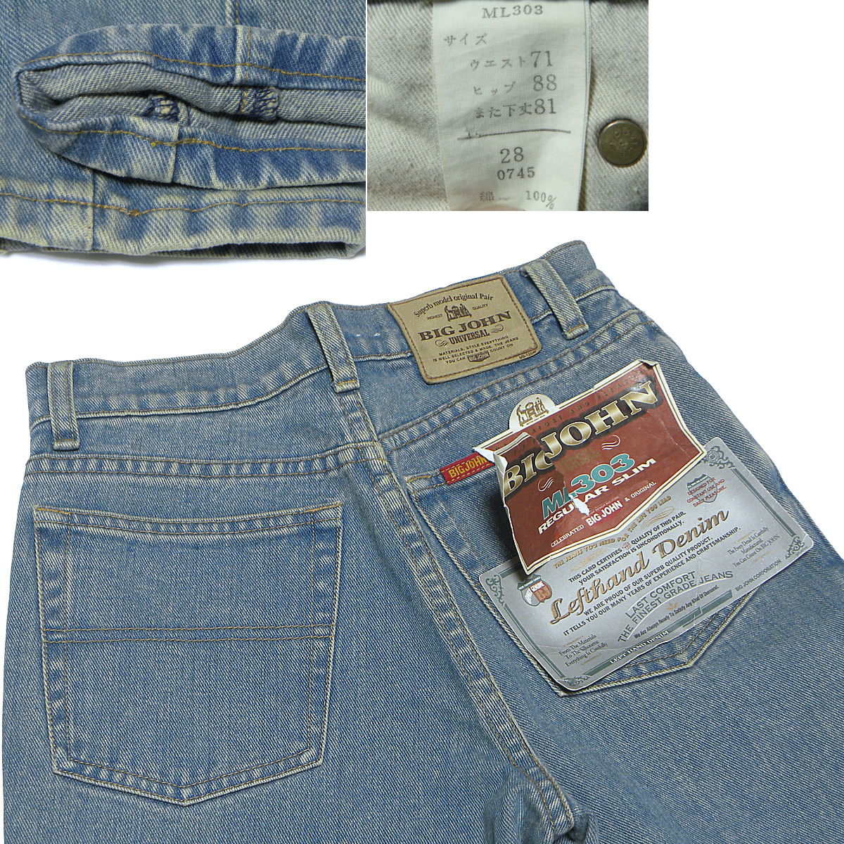 BIGJOHN ML303 W28 レギュラースリムジーンズ 左綾デニムパンツ ビッグジョン REGULAR SLIM Lefthand Denim ◆商品概要 BIG-JOHN ML303 28インチ 股下81.5cm実測値 スリム ジーンズ/デニムパンツです(未使用デッドストック品)。 ◆商品状態 画像5枚目:紙フラッシャーに破れあり。 サイドシームに沿った位置(画像6枚目)と右足ふくらはぎ付近(画像7枚目)にかすかなヤケあり。 ◆素材 綿100% ◆実寸 【単位はcm:平置きで計測】 ウエスト:34.5 股下 :81.5 股上 :28 わたり幅:26(股下10cmを計測) 裾幅 :15.5 素人採寸につき若干の誤差はご容赦願います。 ◆検品について 出品前に入念に商品状態を確認し、汚れや傷みがあればできるだけ具体的に記載するように心がけています。希に微小な瑕疵を見落とす場合がありますが、その際には注意して見ないと気づかないレベルのものということで、どうかご容赦願います。 |