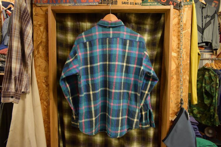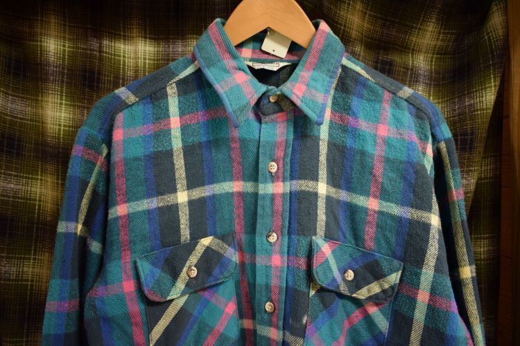グッドカラー◎80sビンテージFIVEBROTHERファイブブラザー長袖フランネルチェックシャツL青×ピンク×白×紺アメカジストリート h23575