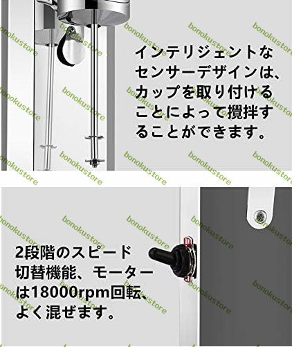 ●2段階のスピード切替機能、モーターは18000rpm回転、よく混ぜます。 シェイクだけでなく、スムージーや冷製スープなども楽しめる。