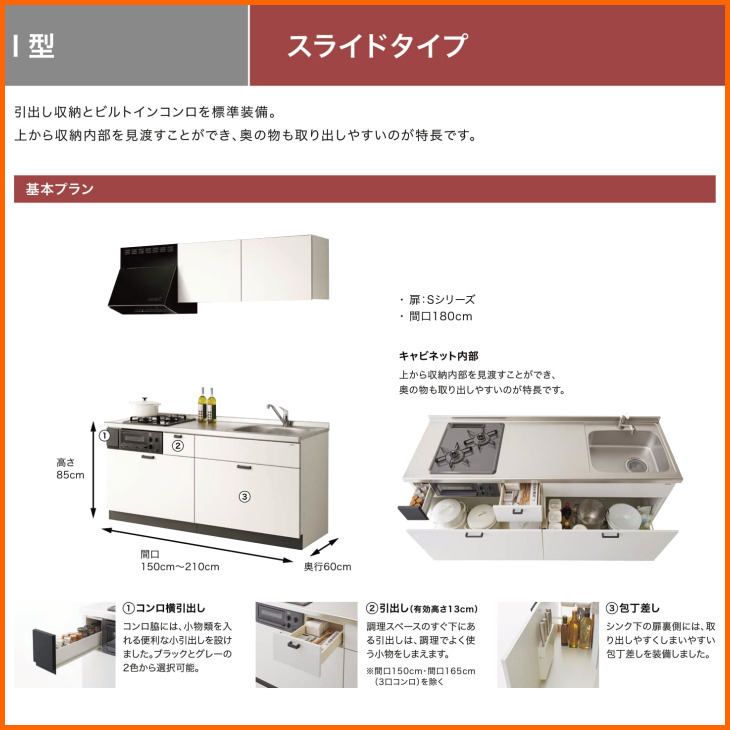 | 商品名 | クリナップ コンパクトキッチン コルティ 1950 スライドタイプ Hシリーズ 3口コンロ Y |