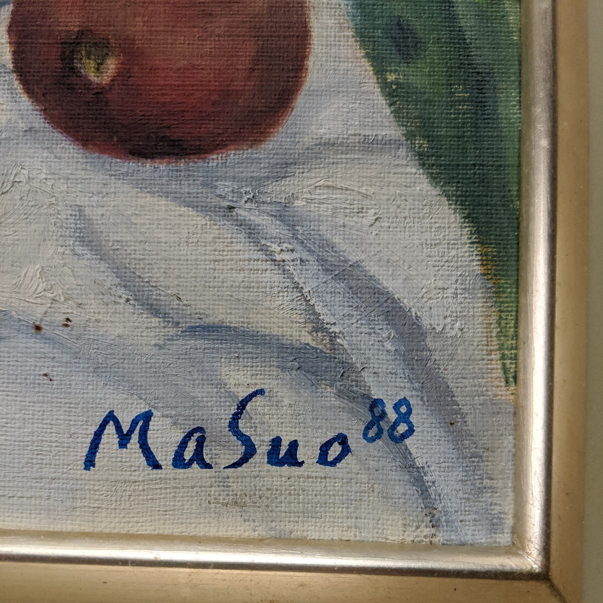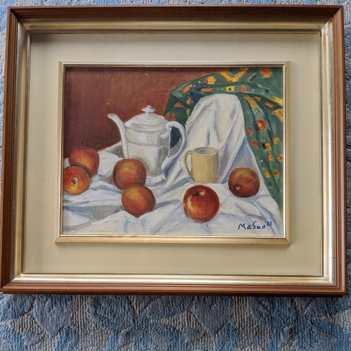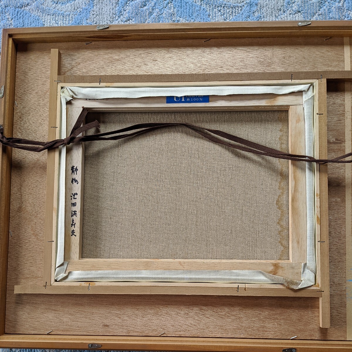 池田満寿夫の静物です。油彩画。額入れて縦53.5cm×横62cm。ガラス?アクリル?汚いです。留め具は緩いのと固いのが混在してます。写真の通り何故か額裏に戸隠残雪 北村世志夫?と書かれてます。鑑定書はございませんので模写として出品いたします。父親のコレクションですので詳しいことは判りません。写真と本文を確認の上入札してください。返品及び返金には対応しませんのでよろしくお願いします。新規(取引経験のない方)、一定以上の悪い評価がついてる方に関してはこちらの判断で入札及び落札を取り消す場合がございますのでご理解ください。