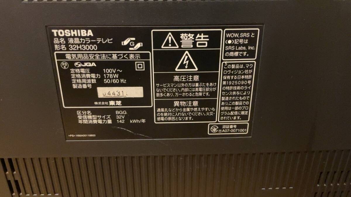 東芝 TOSHIBA REGZA 32H3000 32インチHDD内蔵テレビ 2008年製 B-CASカード リモコン付き ジャンク品です。