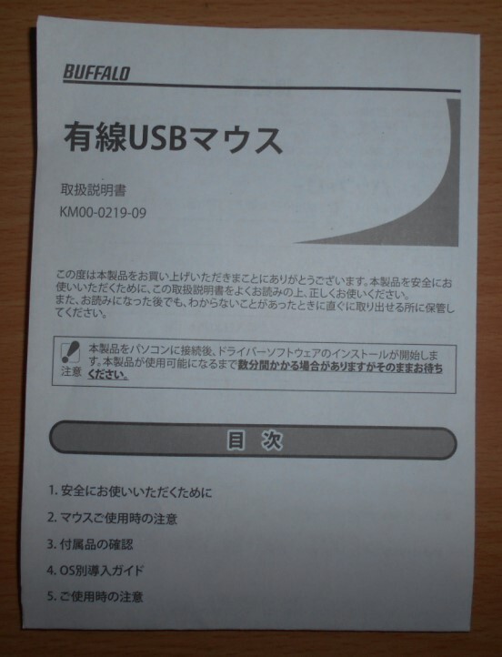 取扱説明書 有線USBマウス用 BUFFALO 中古 1点