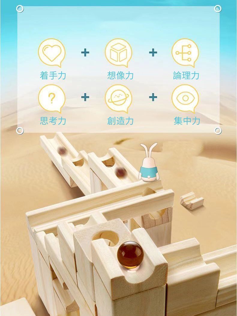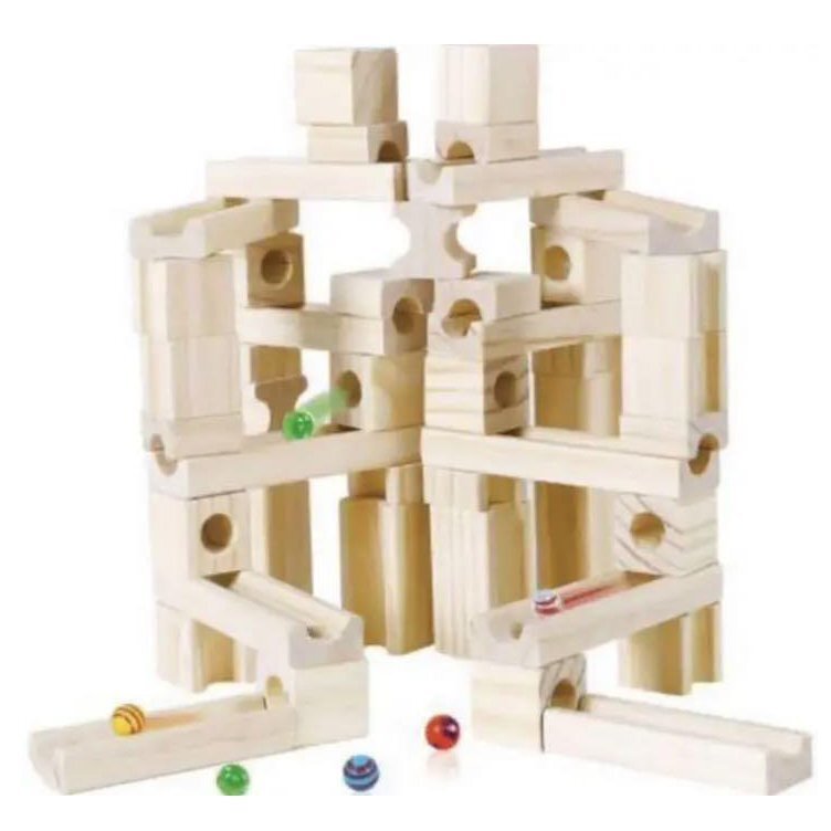OHJ2235☆積み木 スロープ 立体パズル ブロック 木製パズル集中力 創造力 構成力 想像力 木製玉転がし 思考力 トンネル 60ピース