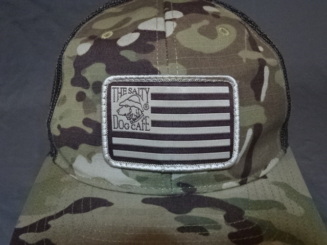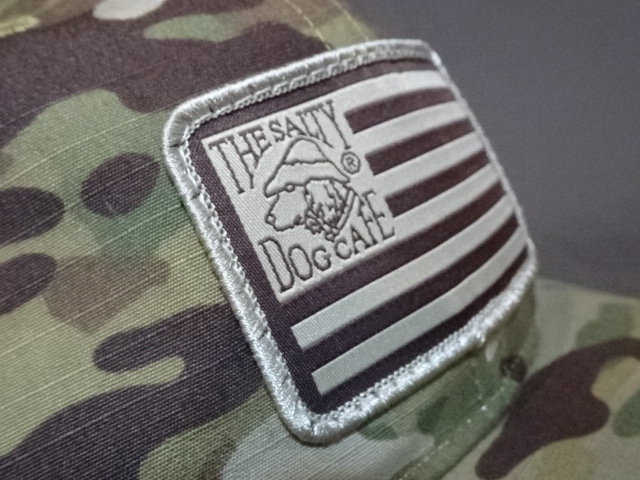 激レア USA購入 アメリカ企業モノ サウスカロライナ州 レストラン【THE SALTY DOG CAFE】星条旗 ロゴ刺繍ワッペン付メッシュCAP 中古良品