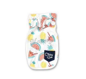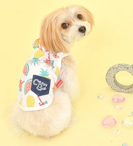 夏が待ち遠しくなる?くま耳フード付きタンクトップ。 スイカとパイナップルの総柄イラストでどこから見てもかわいく。 バックプリントにはラインストーンで大きなHappyのロゴがあり、小さいデニムポケットにクレイジーブーのロゴ入り。 フードにはくま耳がついている映えるデザインとなっています。 フード留めが付いているので、お散歩中もフードが動いて気になるということもありません。 ■カラー:オフホワイト ■サイズ(cm、kg):DS 着丈30~32、胴回り40~42、首回り26~28、体重目安3.5~5.5 ◎ノークレーム&ノーリターンでお願いします。 |