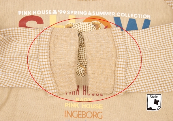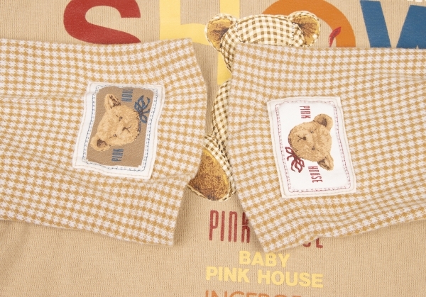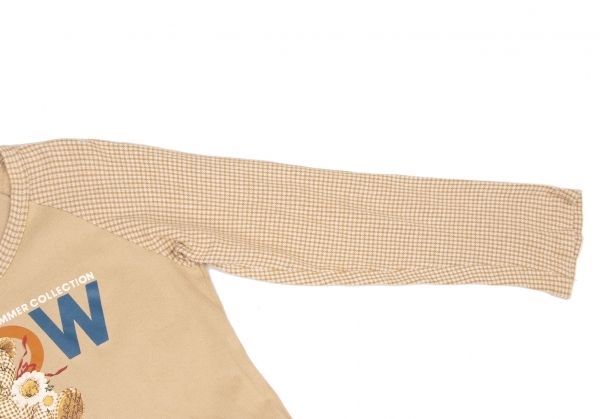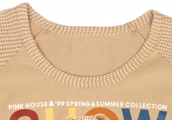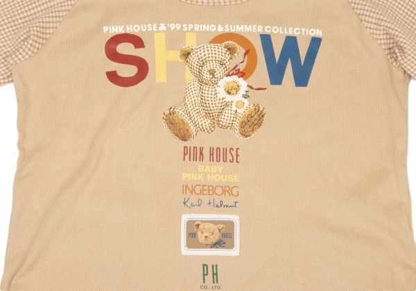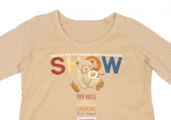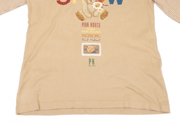 ピンクハウスPINK HOUSE ベアープリントチェック切替ラグランスリーブカットソー ベージュM |