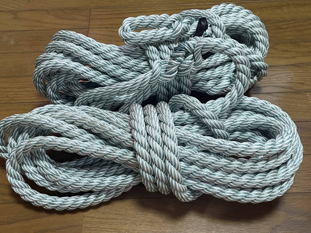 大特価!新品・国産★2巻セット//水色・白/PP・エステルマルチ(マリンロープ)三つ打ちロープ 右撚り★