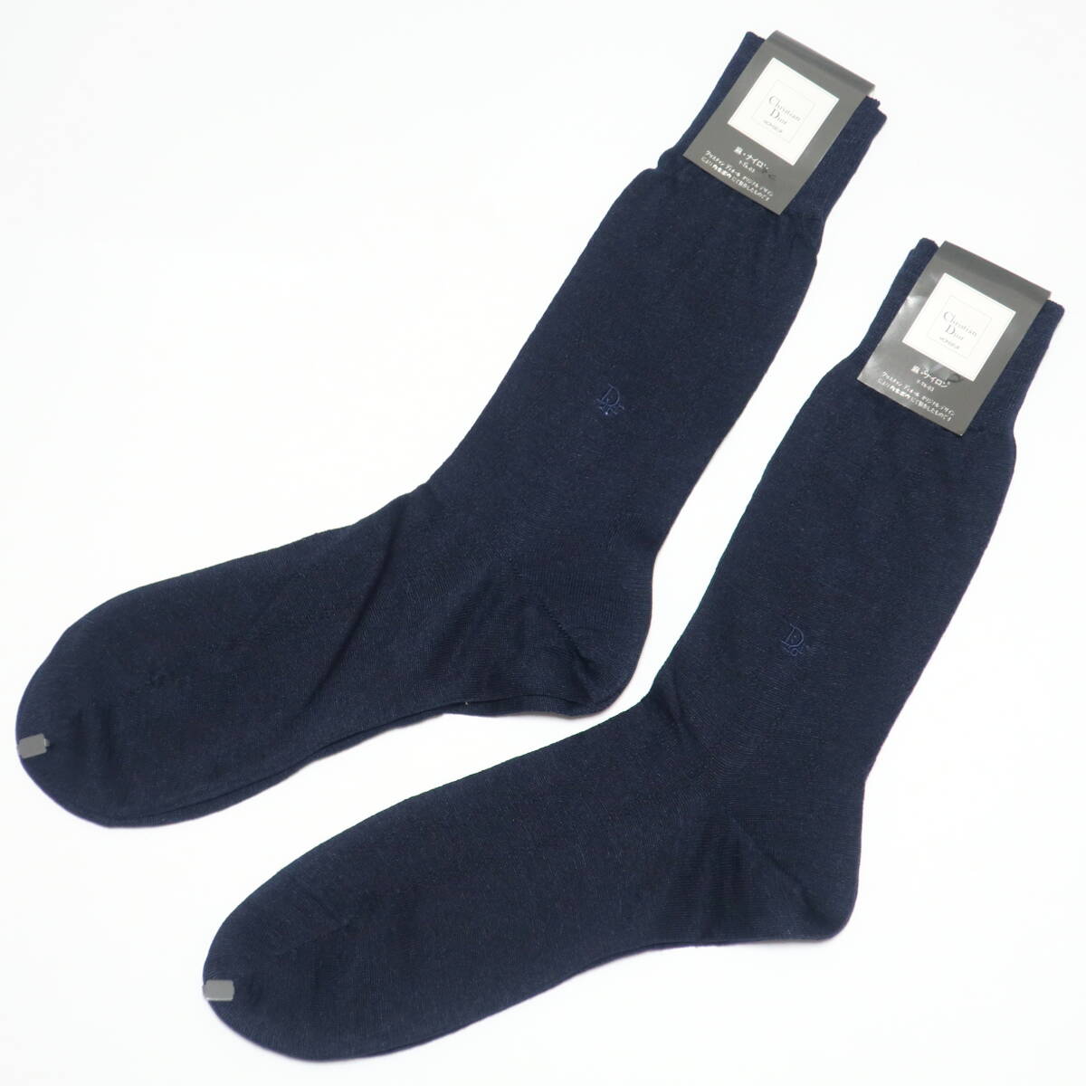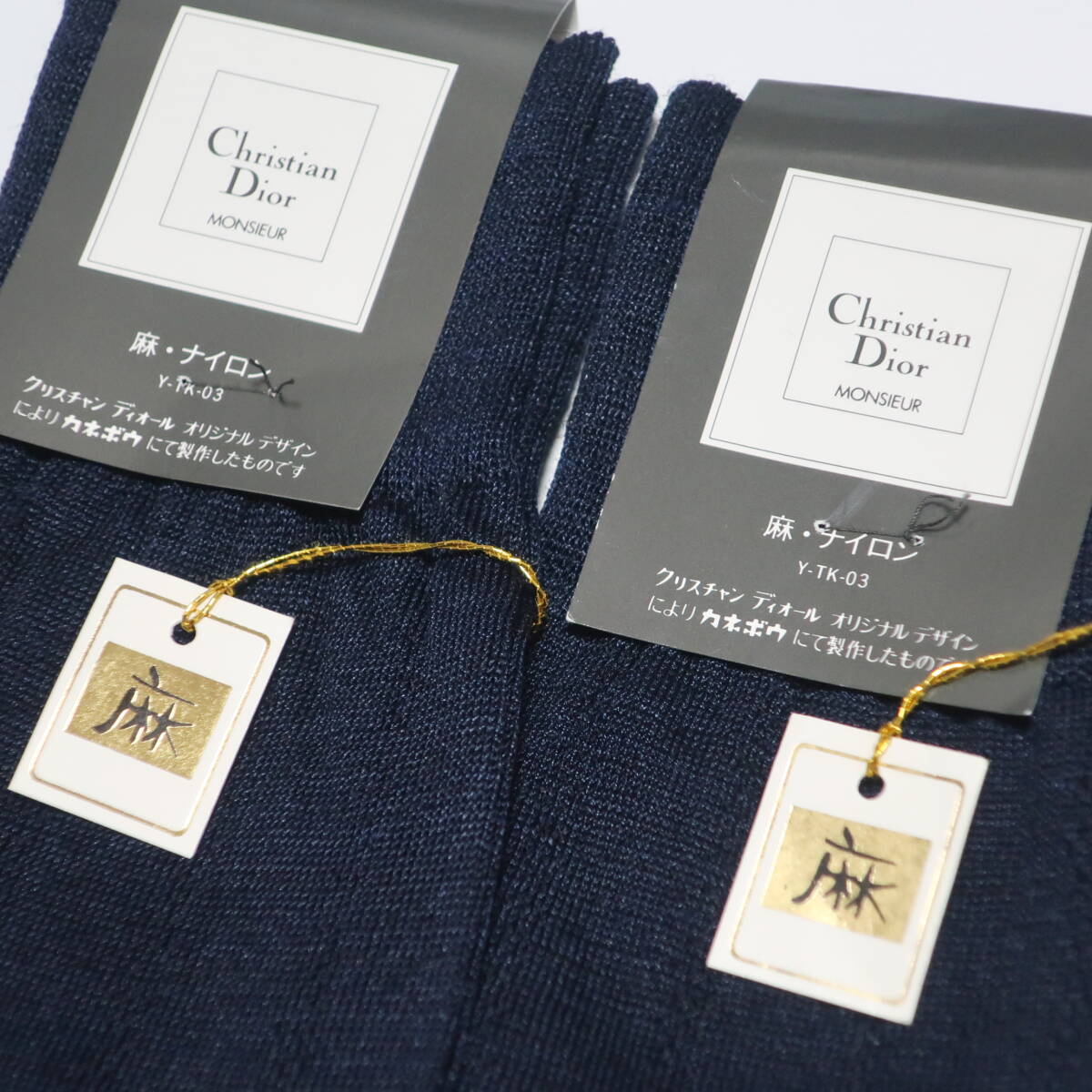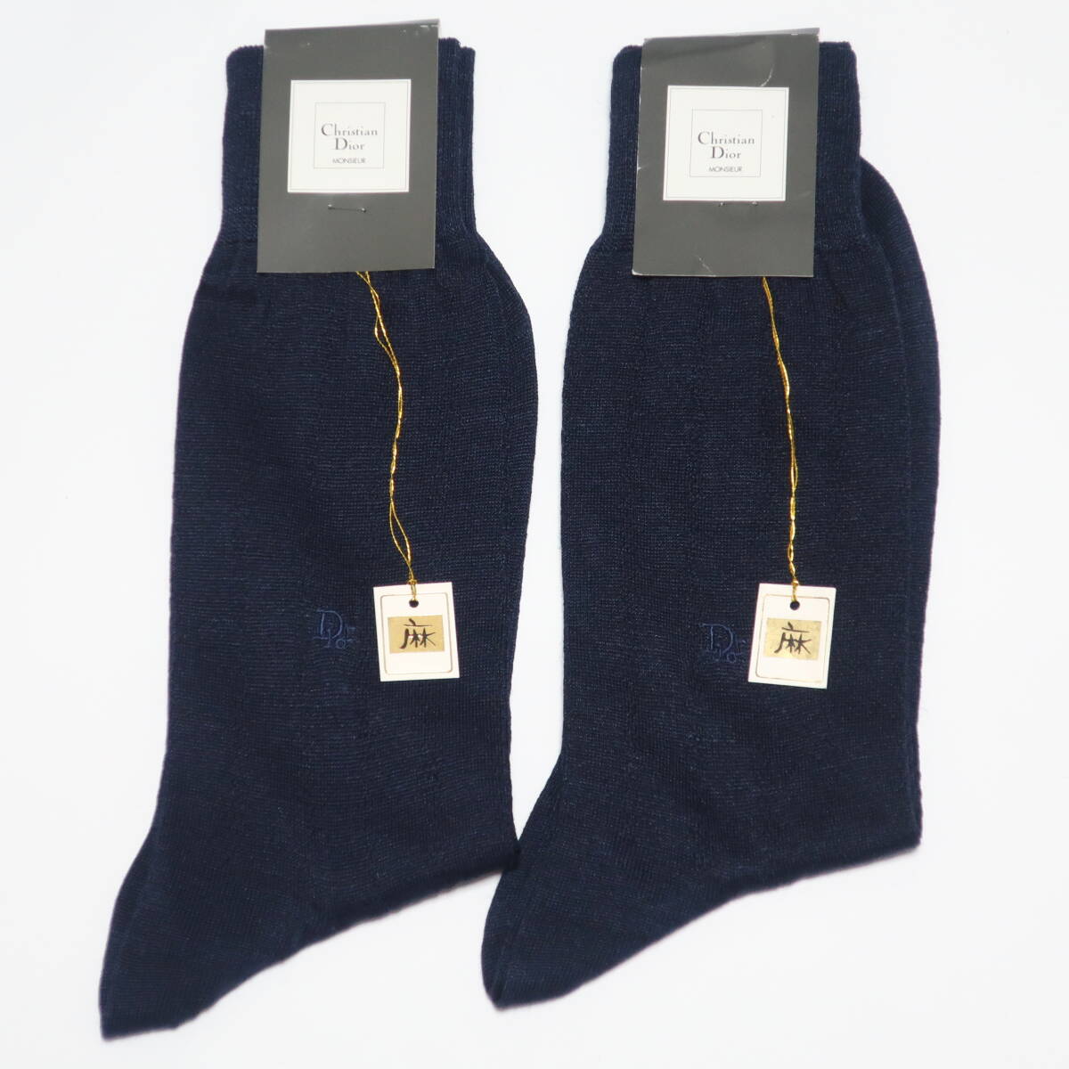 【クリスチャン・ディオール 日本製 麻・ナイロン 靴下 2足セット 濃紺 25cm】