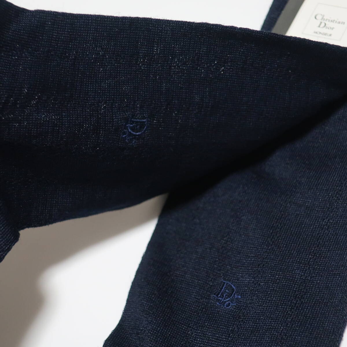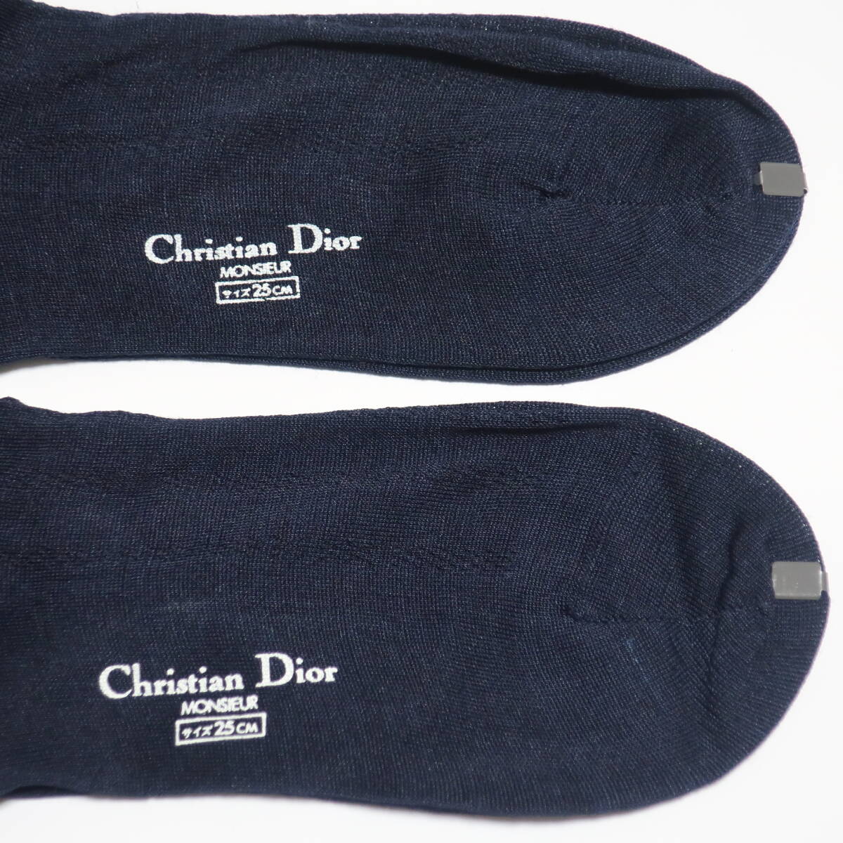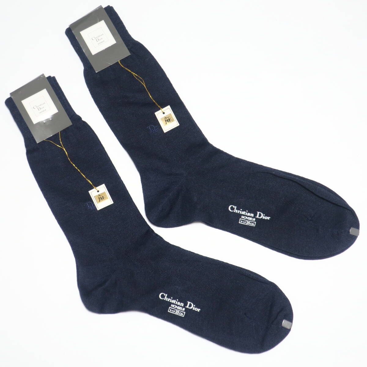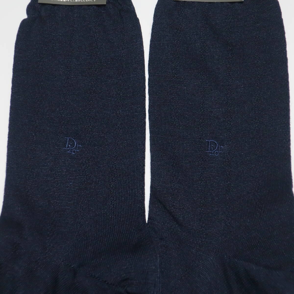 【クリスチャン・ディオール 日本製 麻・ナイロン 靴下 2足セット 濃紺 25cm】
