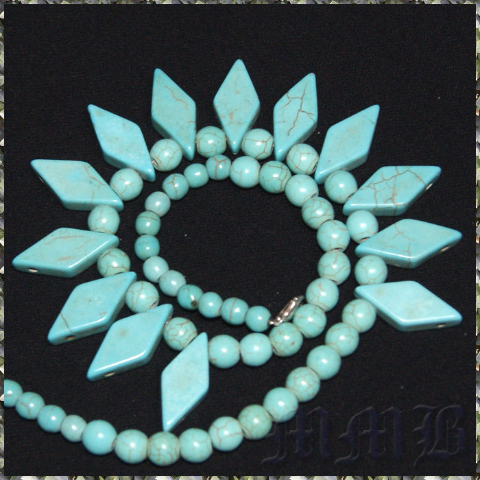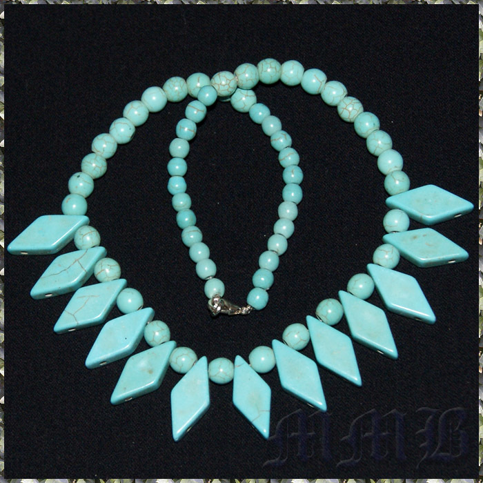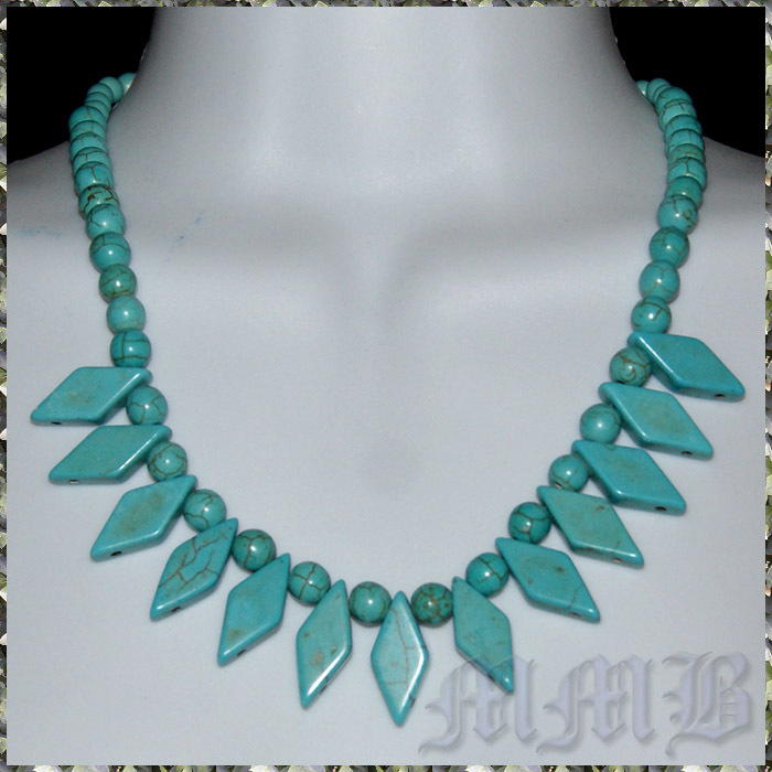 Bohemian Turquoises Blue Stone ナチュラル ターコイズ ブルー 菱 ダイヤ & ボール ストーン ショート チョーカー ネックレス です。