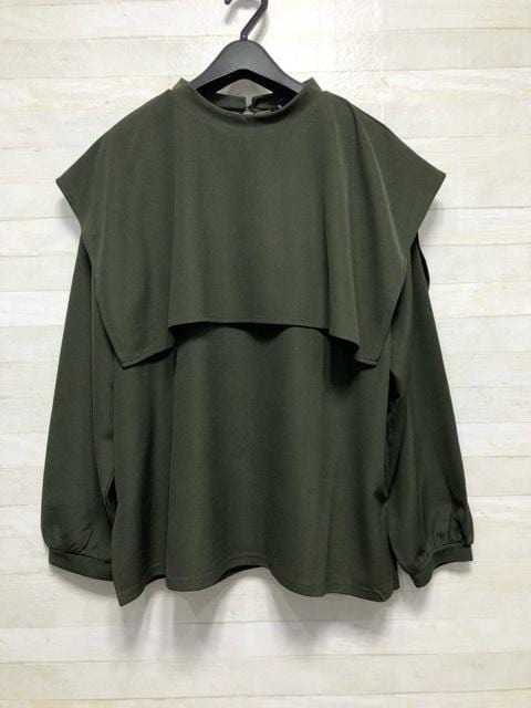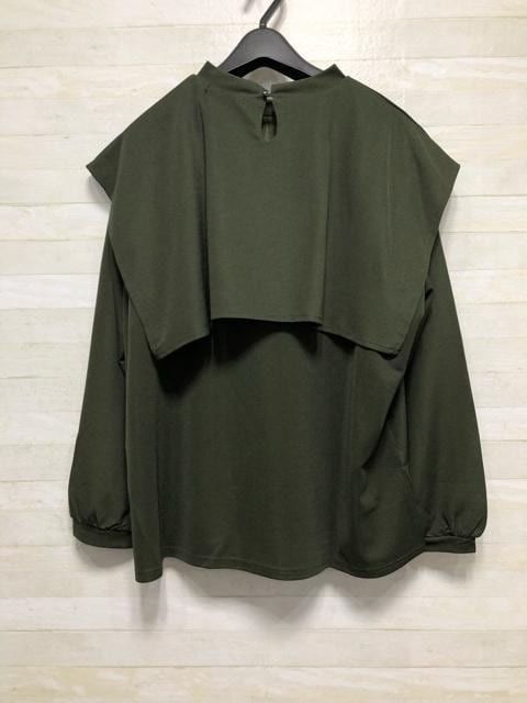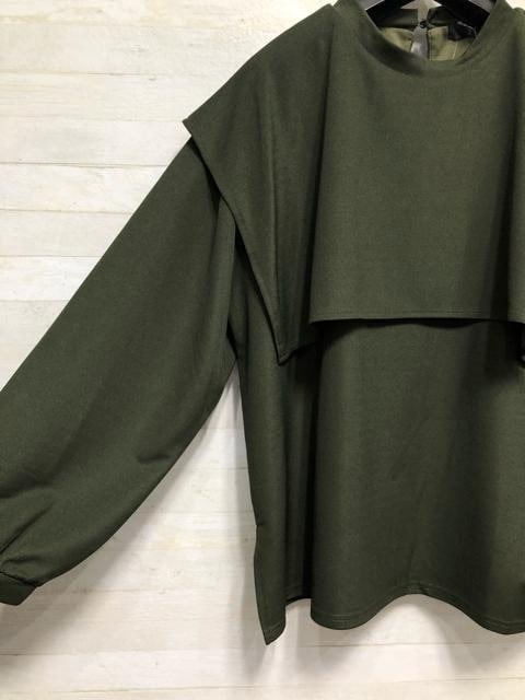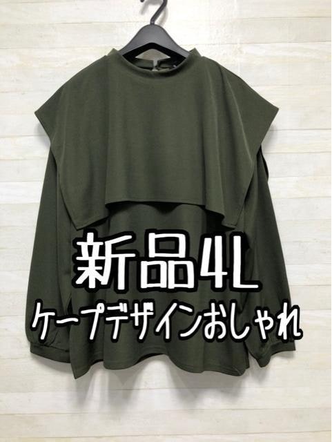 新品☆4Lカーキ系♪ケープデザインかわいい長袖トップス☆p111
