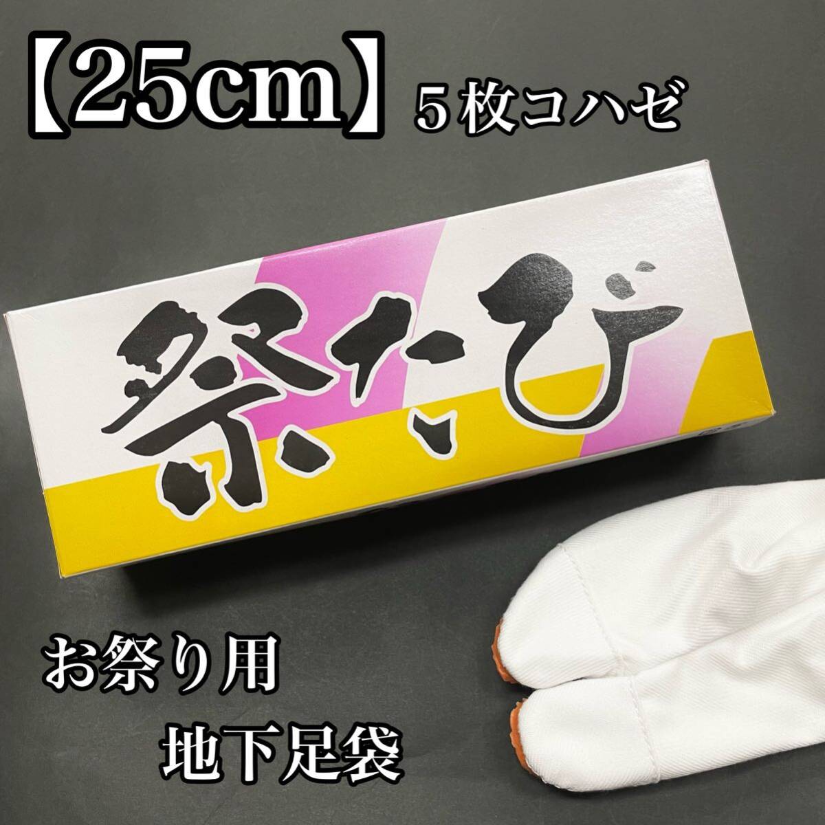 25 白 地下足袋 力王 お祭り足袋 お祭り用足袋 5枚 こはぜ コハゼ 力王 丸五 荘快堂 クッション貼付 ゴム底 足袋 白色 新品