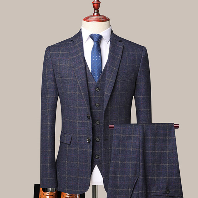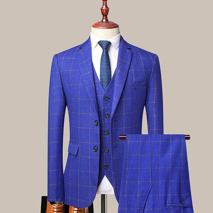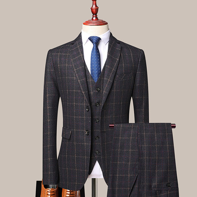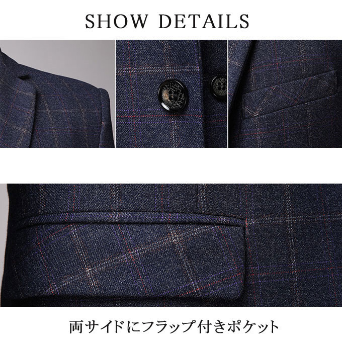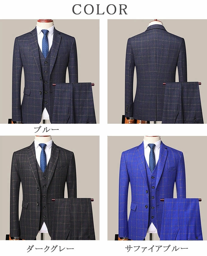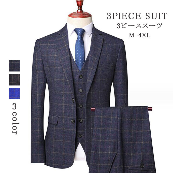 スーツ メンズ 3ピーススーツセットアップ ビジネススーツ フォーマルスーツ チェック柄 カジュアル 二次会 成人式 就職活動 M~5XL/24XF11