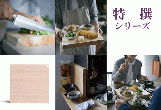 スタイリッシュな正方形のまな板。 和製カッティングボードとして、食材を盛り付けてテ-ブルでも活躍 | |