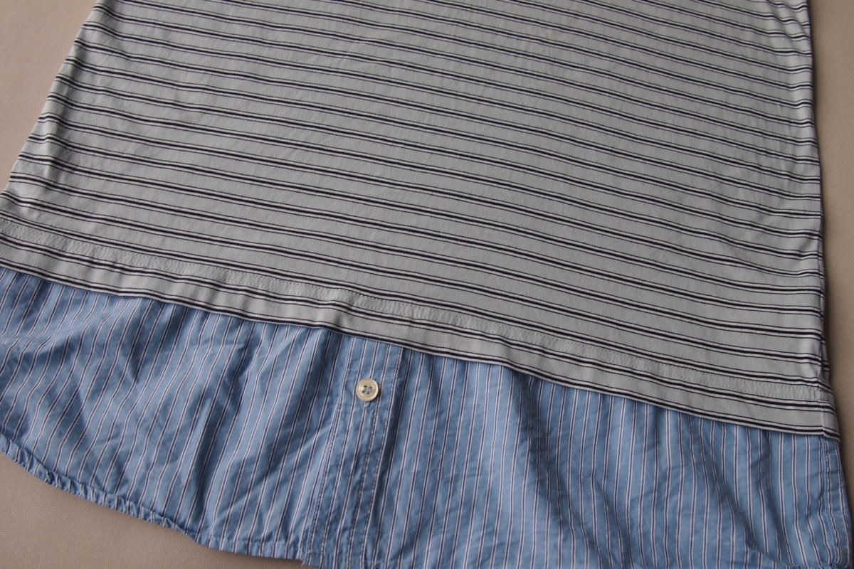 ラコステ ライブ★ラコステ★半袖Tシャツ★レイヤード風★切替裾シャツ★刺繍ワッペン★ボーダー柄★ストライプ柄★サイズ3★LACOSTE★LACOSTE L!VE | |||||||||||||||||||