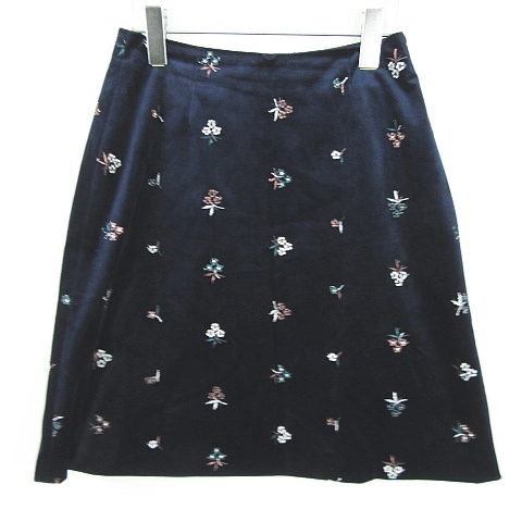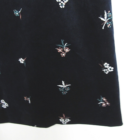 ナチュラルビューティーベーシック NATURAL BEAUTY BASIC 起毛 フレア スカート 膝丈 M ネイビー 花柄 刺繍 kz8931 レディース