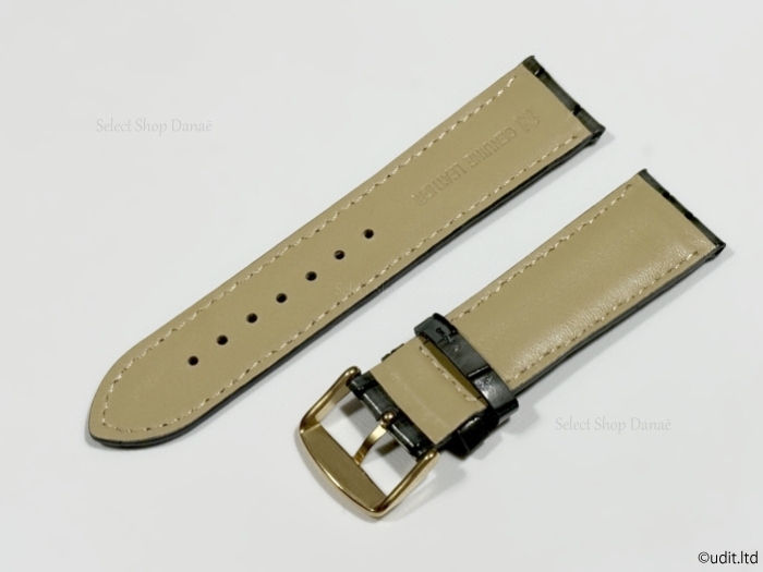 ラグ幅 22mm クロコダイル 型押し レザーベルト グレー 腕時計ベルト 時計用バンド 尾錠 ゴールド LB102