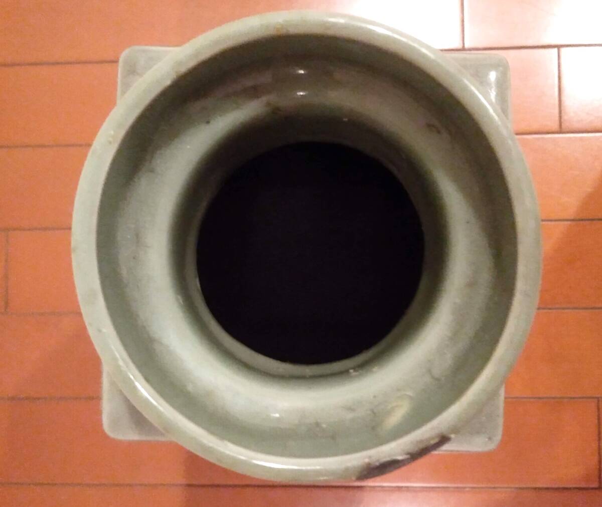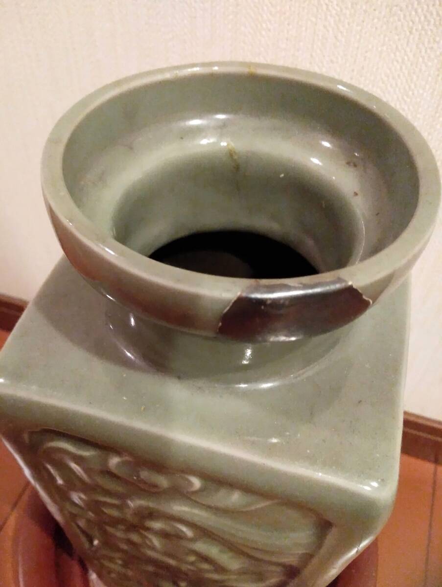ブランド、メーカー:古三田青磁の龍文の角形大花瓶です。江戸末期の古いものと思います。素人判断ですのでご理解の上ご判断ください。 同じ竜文と思われる新聞記事を添付しました。なお古いものですので経年変化による汚れ等はご理解の上入札ください。 浮彫竜文、深い緑青色が美しいです。