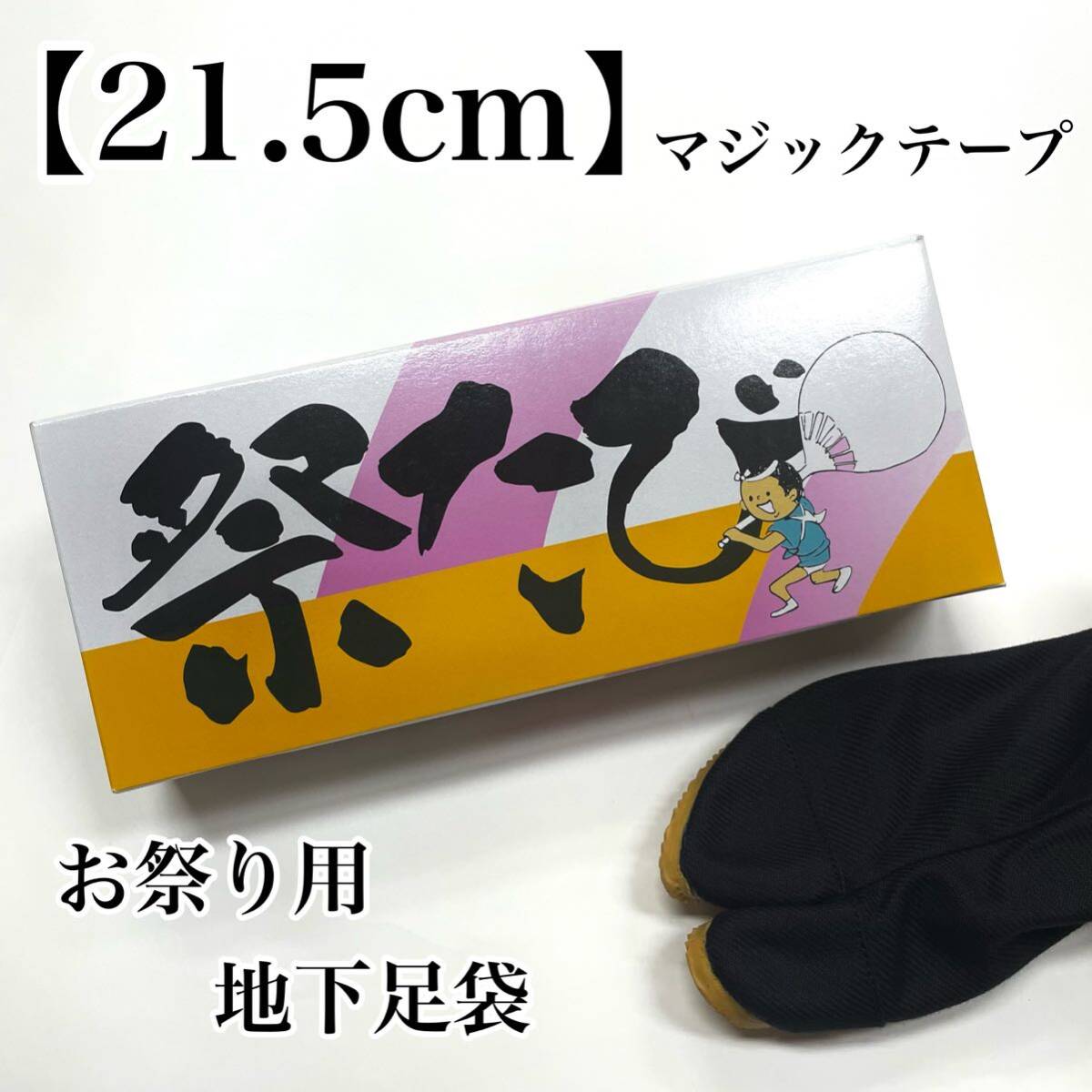 21.5 黒 地下足袋 力王 お祭り足袋 お祭り用足袋 力王 丸五 荘快堂 祭たびクッション貼付 子供用 女性用 子供 女性 女 ゴム底 足袋 黒色