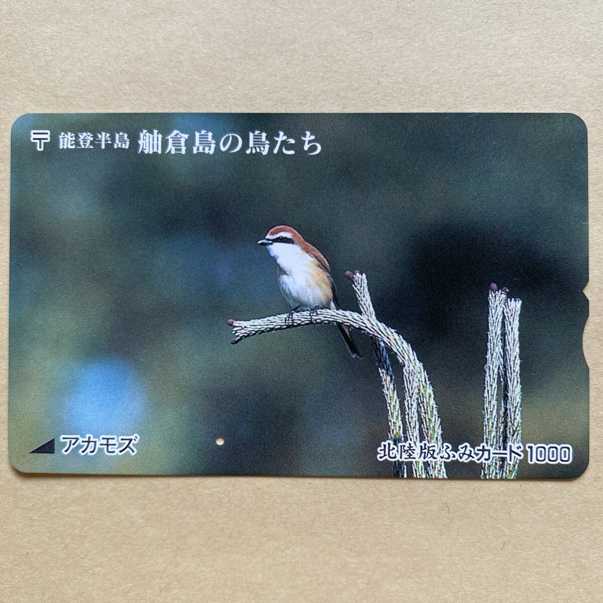 【使用済】 野鳥ふみカード 北陸版 能登半島 舳倉島の鳥たち アカモズ