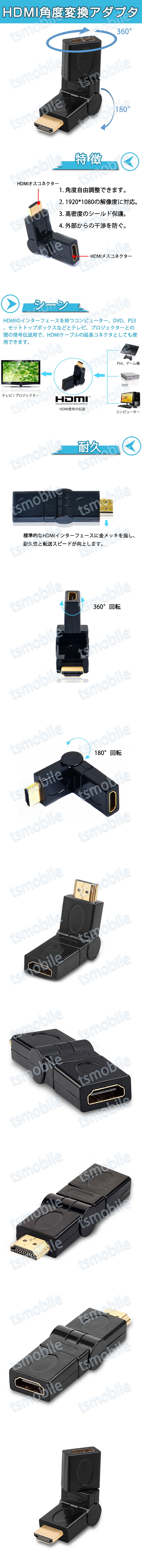 | HDMI端子 ポート向き 変換アダプタ 90°~270°方向変換 角度変換 HDMIオス→HDMIメス 角度自由調整できます。1920*1080の解像度に対応。高密度のシールド保護。外部からの干渉を防ぐL字型アダプタとしても使えます。HDMIポートは360°回転でき、はいろんな状況に対応可能。ドライバ不要、アプリ不要、設定不要、繋いですぐ使えます。1920*1080P HD画質サポート V1.4HDMIインターフェースは金メッキ処理されて、サビに強く、干渉されにくいです。壁のコーナーなどで配線の差し込みが不便と感じた場合、このアイテムで問題を解決する。テレビやパソコンのケーブルをキレイに整理するためのグッズです。ケーブルを曲げることを少なくして、断線や故障のリスクを軽減します。対応可能機種:HDMIポートを持つ HDMIケーブル、パソコン、テレビ、ゲーム機、PS、プロジェクター。 |